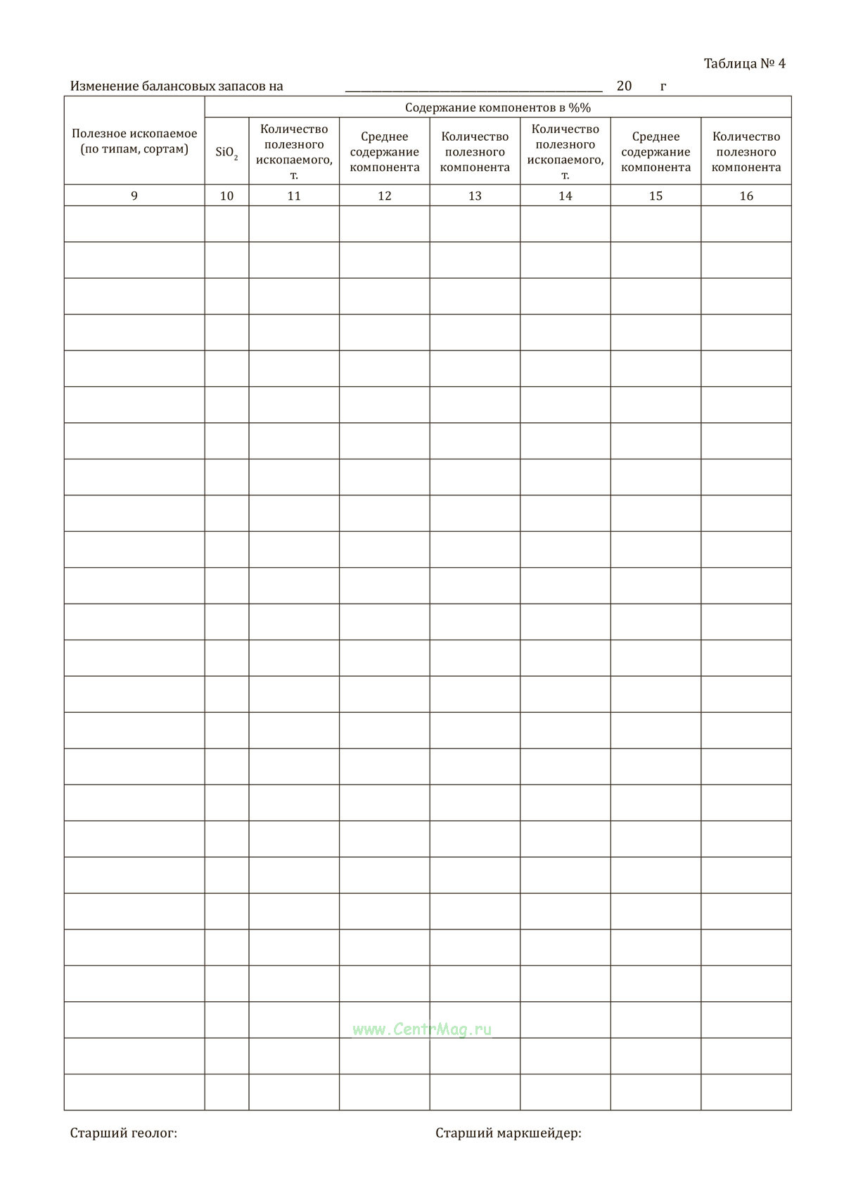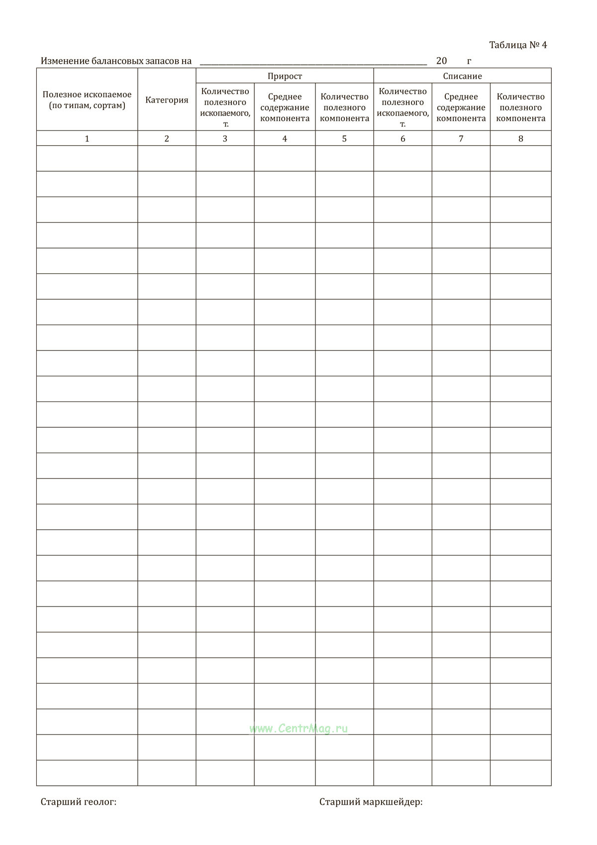 - Таблица №4. Изменение балансовых запасов;