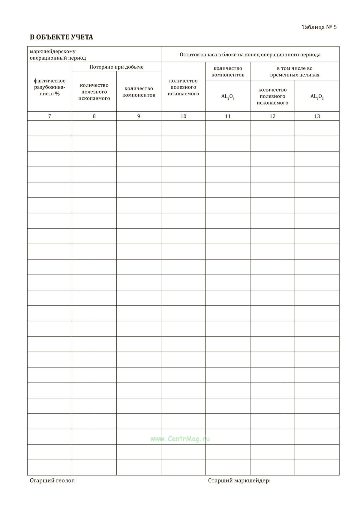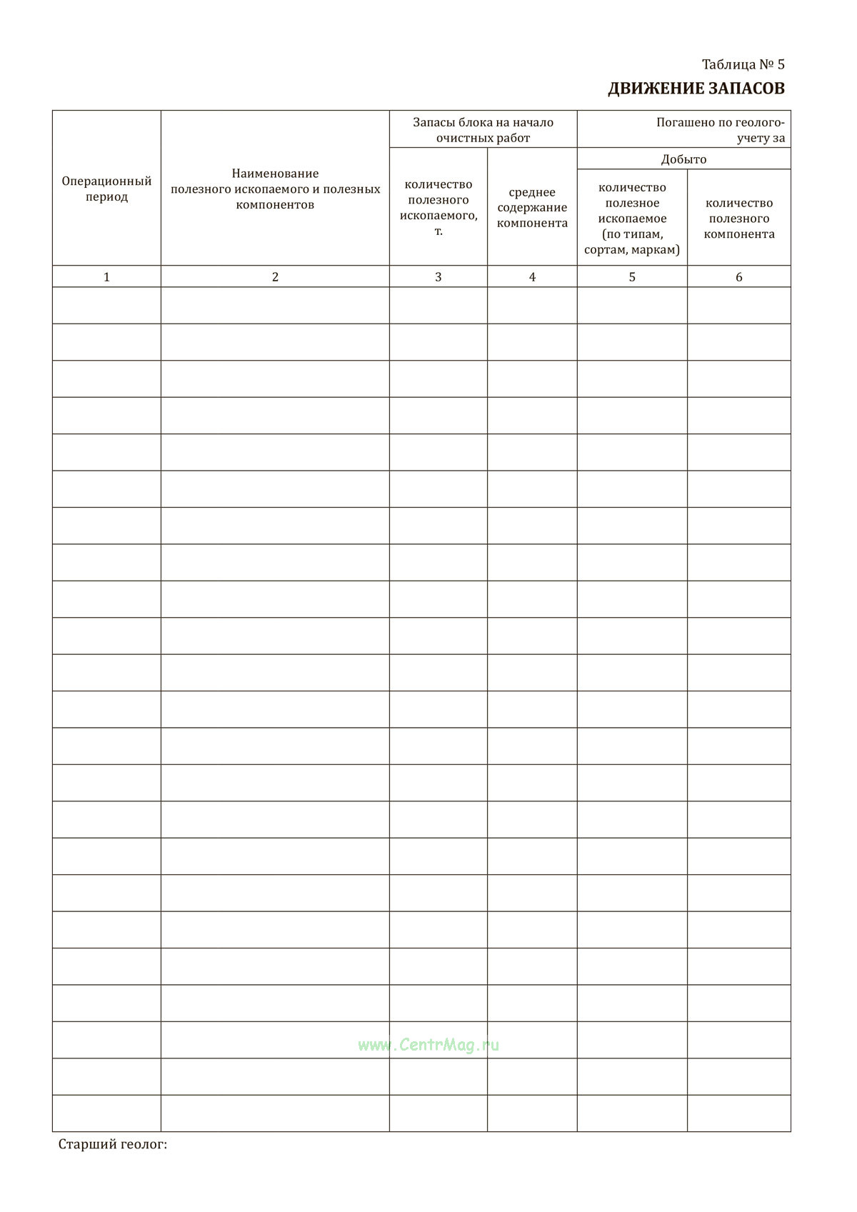 - Таблица №5. Движение запасов в объекте учета;
