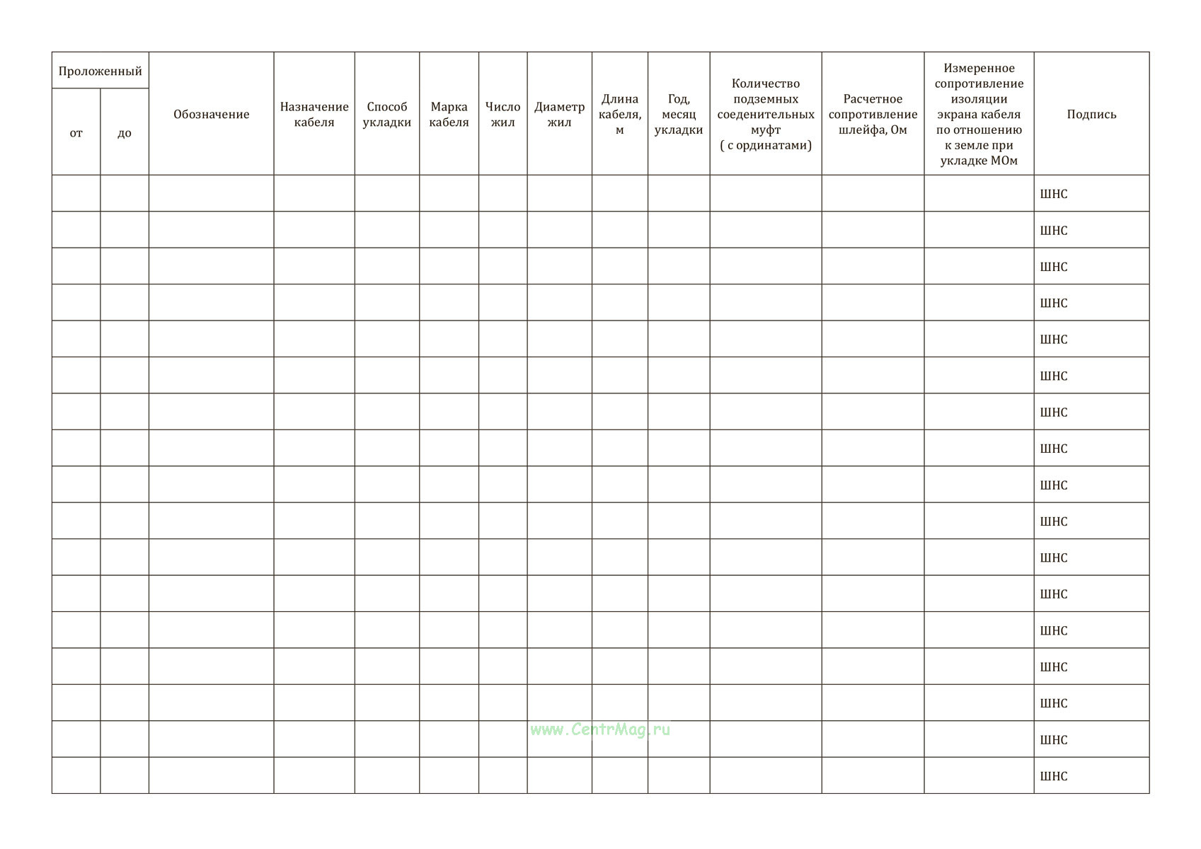 Паспорт на кабель (Форма ШУ-48/Н1э)