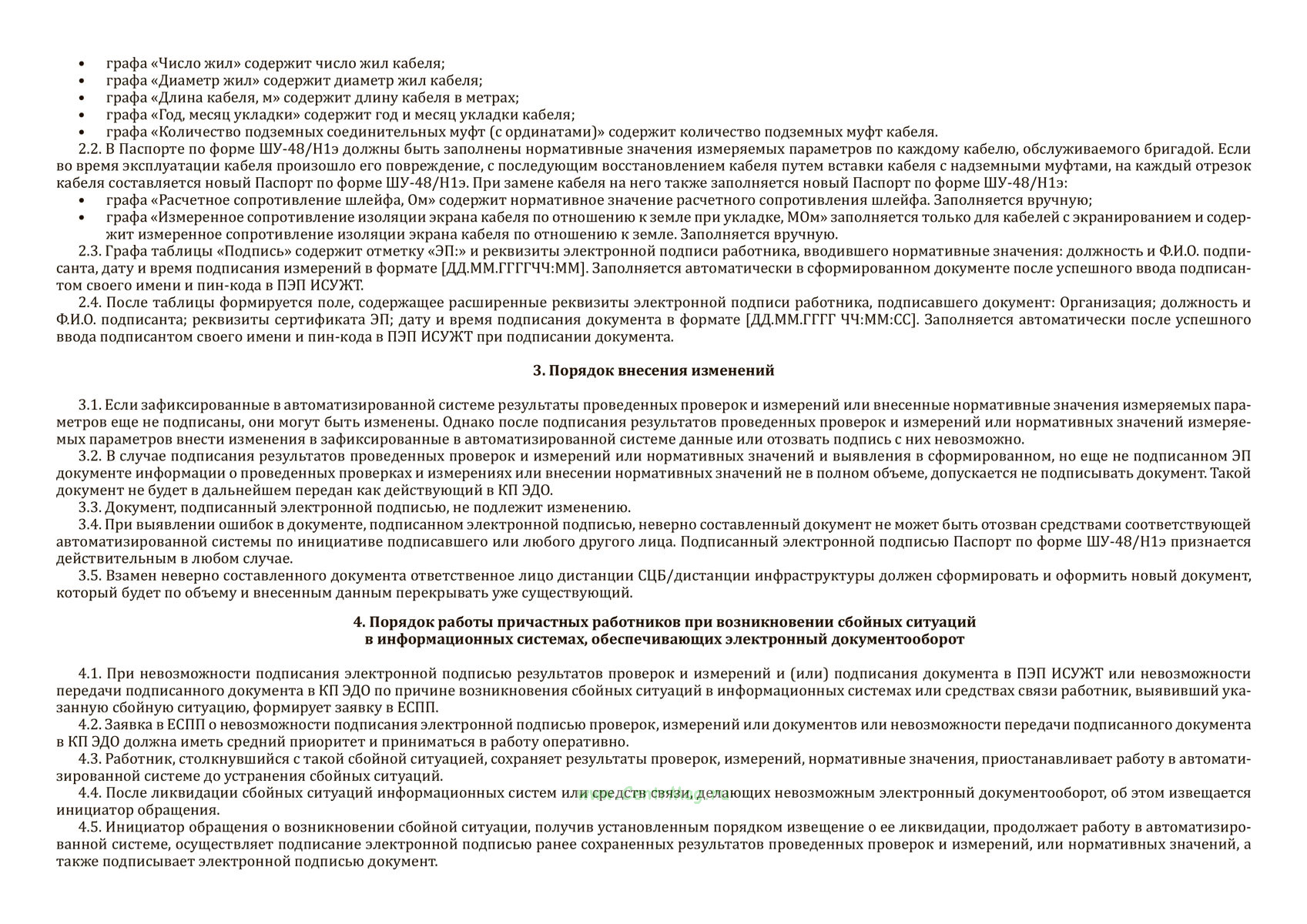 Перед включением кабеля в эксплуатацию на него должен быть оформлен Паспорт по форме ШУ- 48/Н1э. Паспорт по форме ШУ-48/Н1э оформляется на все кабели, уложенные на станции или перегоне.
