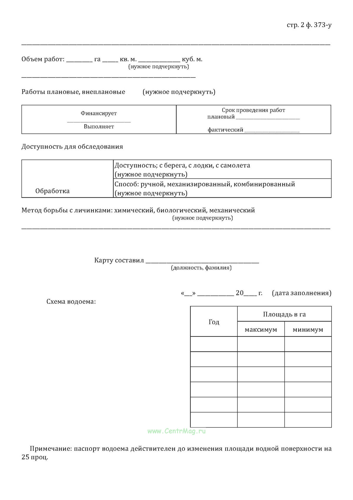 Паспорт водоема (Форма N 373-у) продается только как чистый незаполненный бланк, без печатей и подписей соответствует 149-ФЗ от 27.07.2006