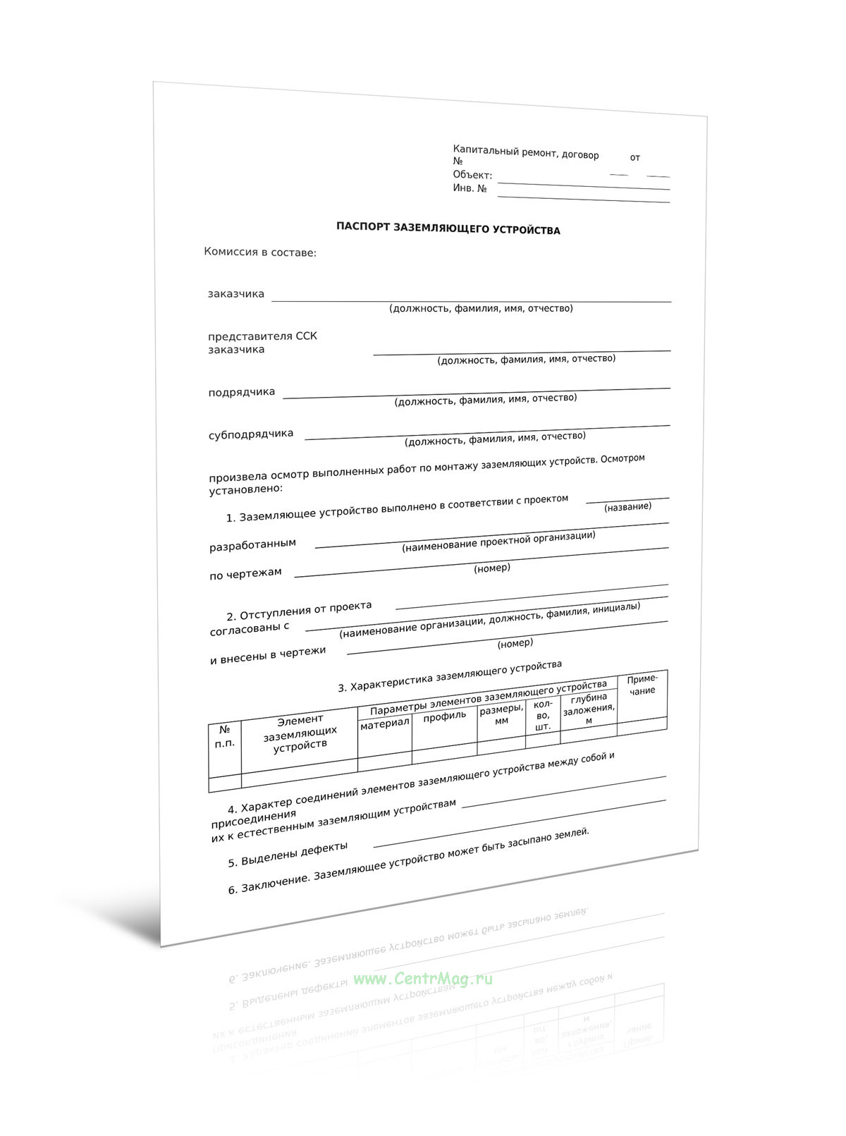 Паспорт заземляющего устройства (Форма Д.55) продается только как чистый незаполненный бланк, без печатей и подписей соответствует 149-ФЗ от 27.07.2006