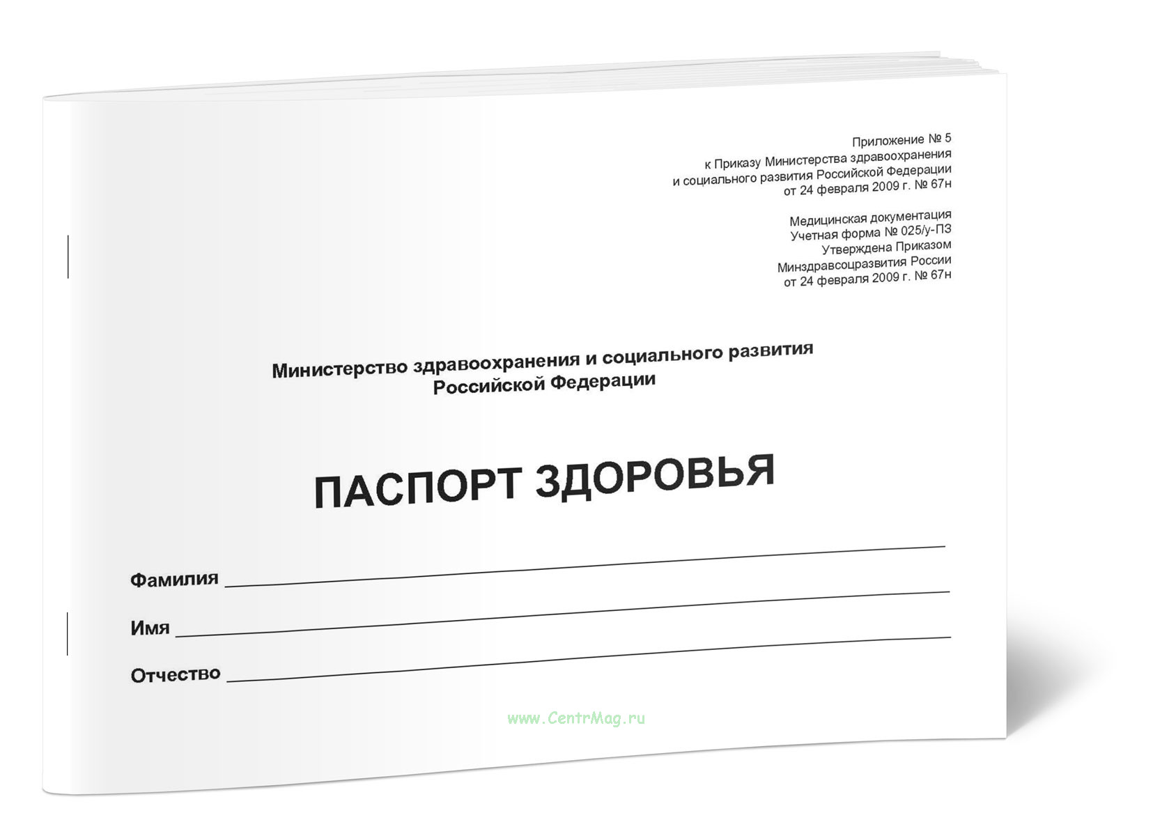 Форма паспорта здоровья соответствует Приложению 5 к Приказу Минздравсоцразвития РФ от 24.02.2009 N 67н, который утратил силу.