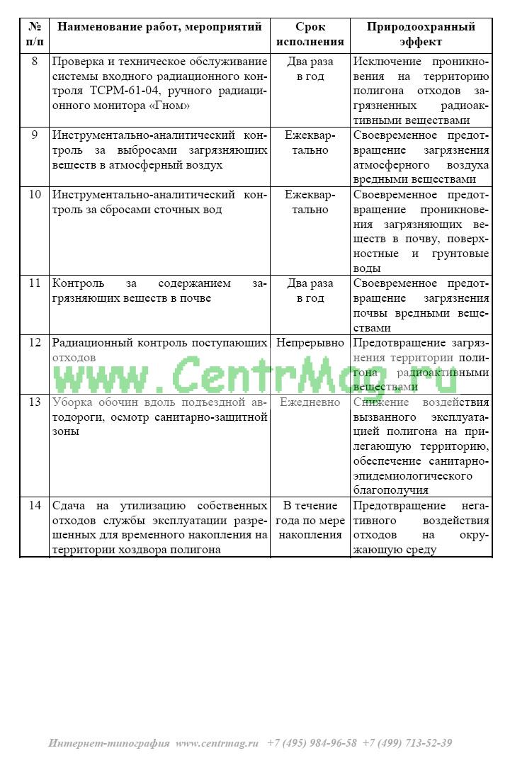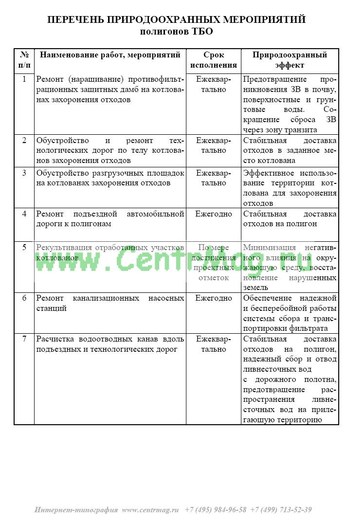 Природоохранные мероприятия, осуществляемые предприятием, должны полностью компенсировать отрицательное воздействие производства на природную среду. Кроме того, предприятие возмещает ущерб, причиненный за загрязнение окружающей среды и нерациональное использование природных ресурсов, несет материальную ответственность за несоблюдение законодательства об охране природы. Поэтому для промышленных предприятий очень важно правильно и наиболее рационально составлять Перечень природоохранных мероприятий полигонов ТБО. При этом необходимо учитывать тенденции изменения затрат на эти мероприятия за последние годы и предстоящие расходы на большие природоохранные проекты.