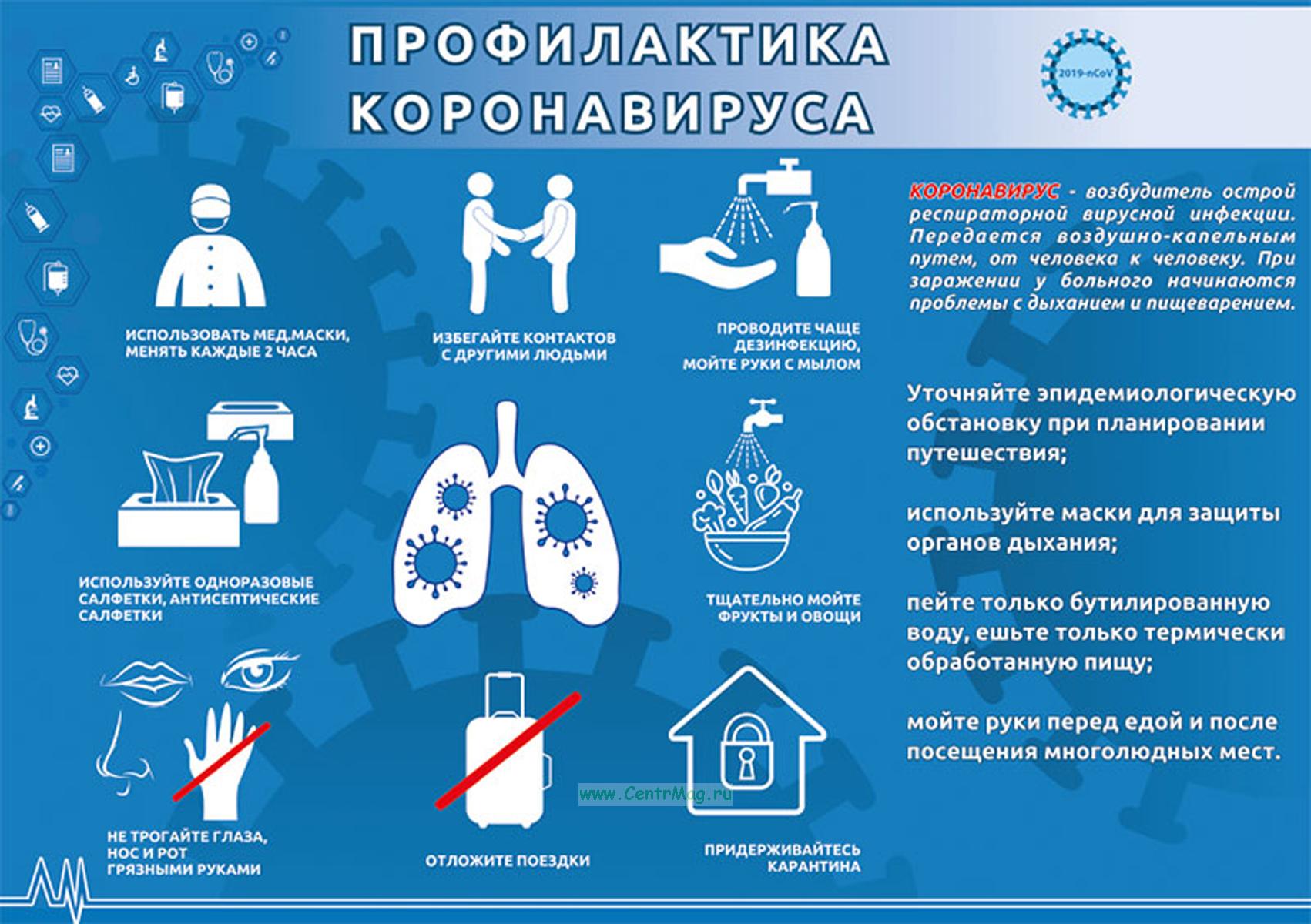 На плакате содержится информация о мероприятиях по профилактике коронавируса: