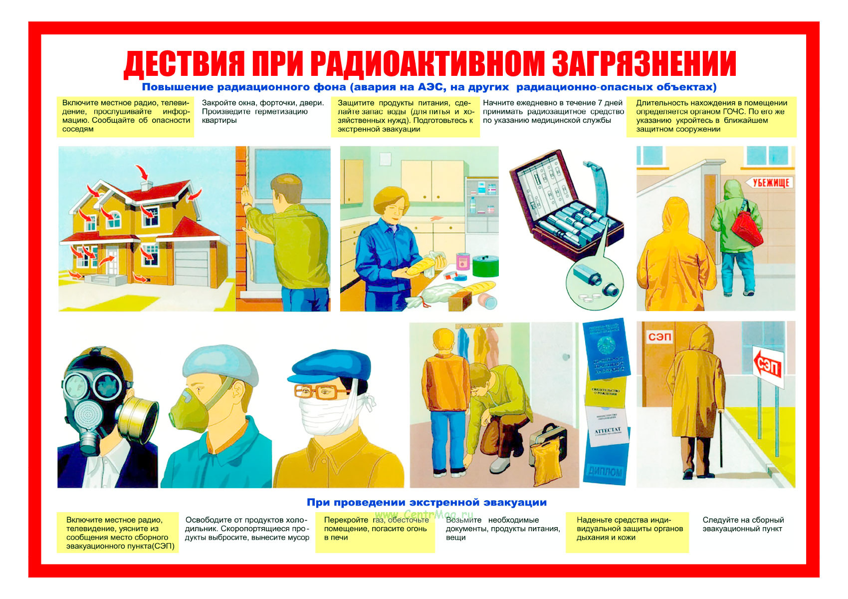 - Пошаговые действия при эвакуации и необходимых мерах для минимизации воздействия радиации.