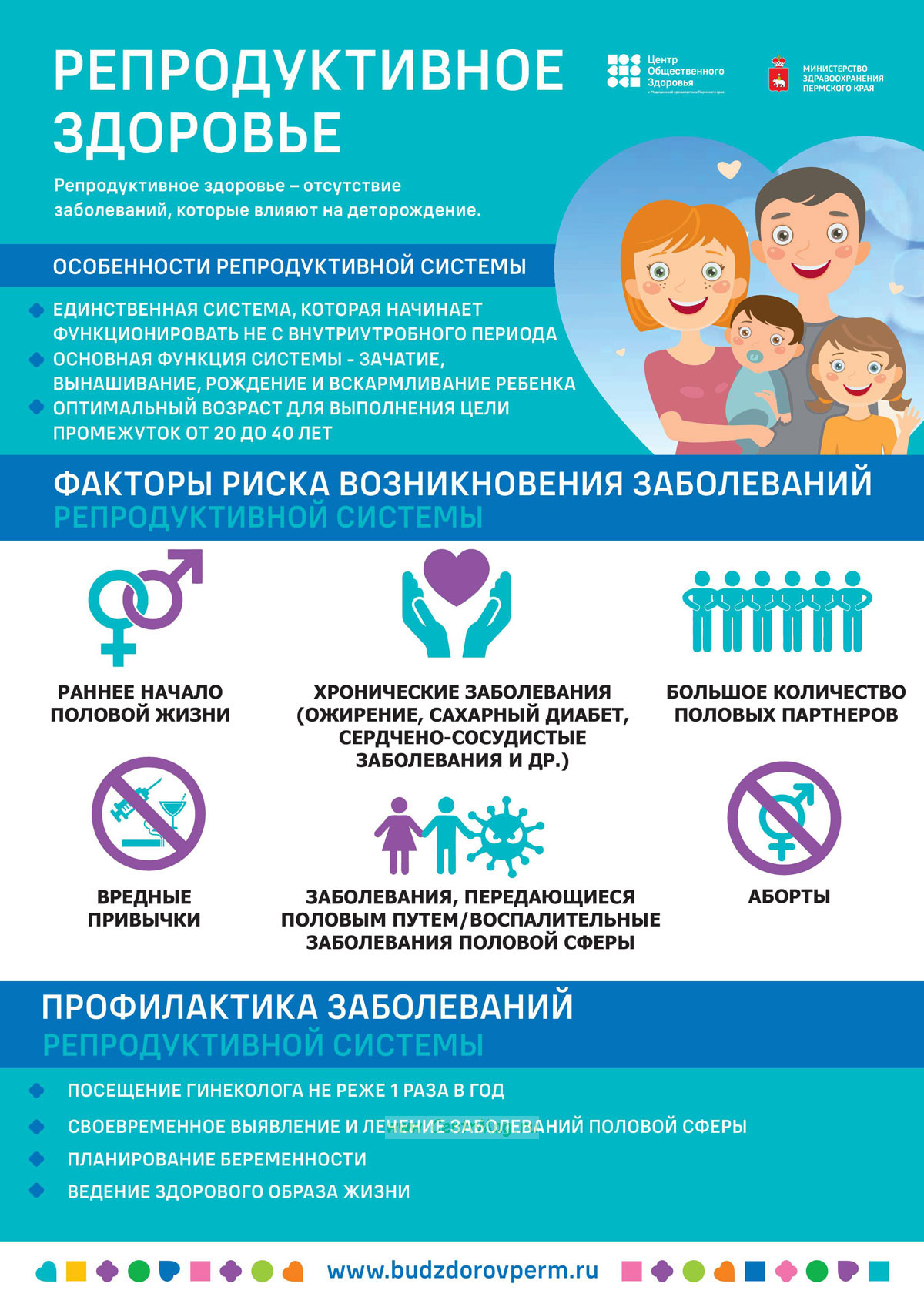 Плакат "Репродуктивное здоровье" предназначен для повышения осведомленности среди подростков, молодых людей и семей о важности заботы о репродуктивной системе, профилактике заболеваний и здоровом образе жизни. Может служить наглядным пособием в школах, поликлиниках и консультационных центрах.