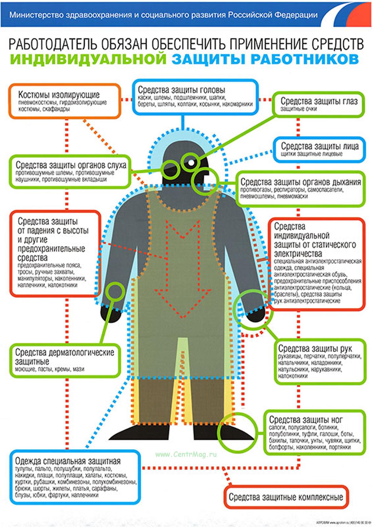 Плакат рекомендуется для организаций, где по условиям работы, необходимо использование различных СИЗ.