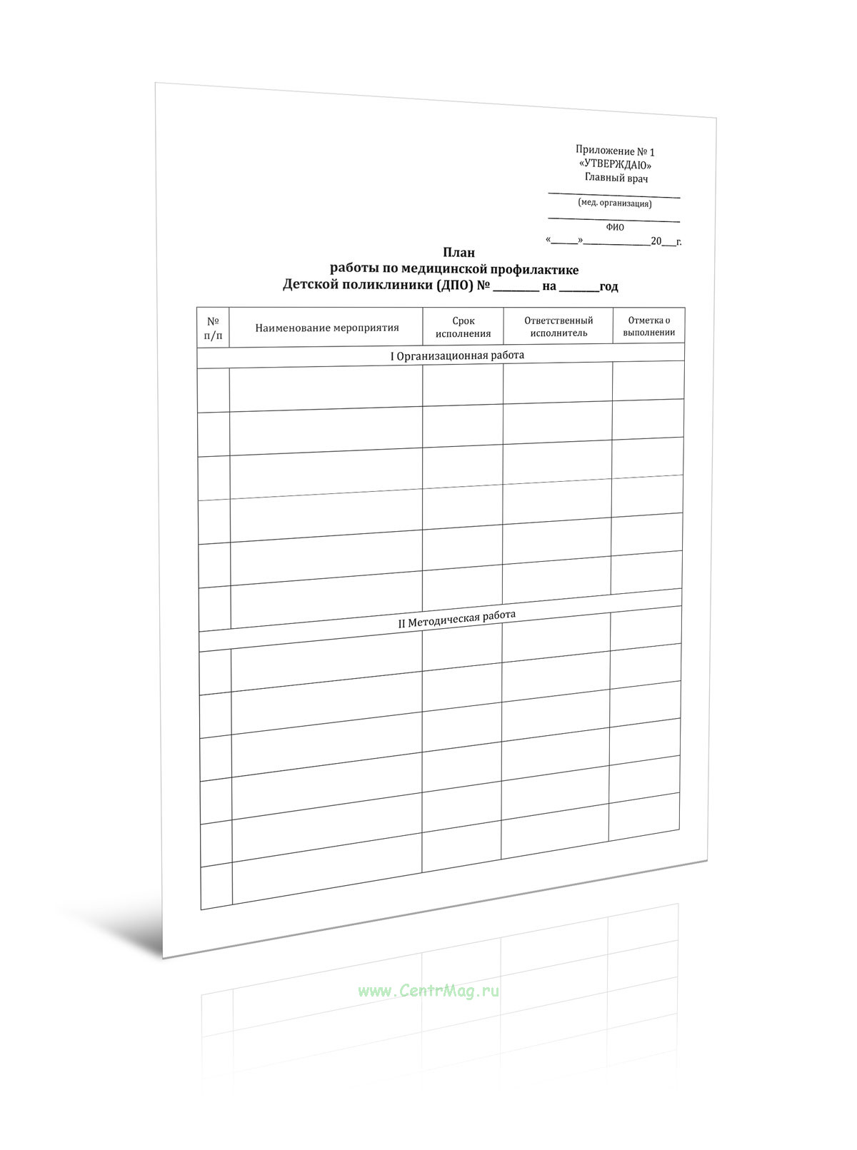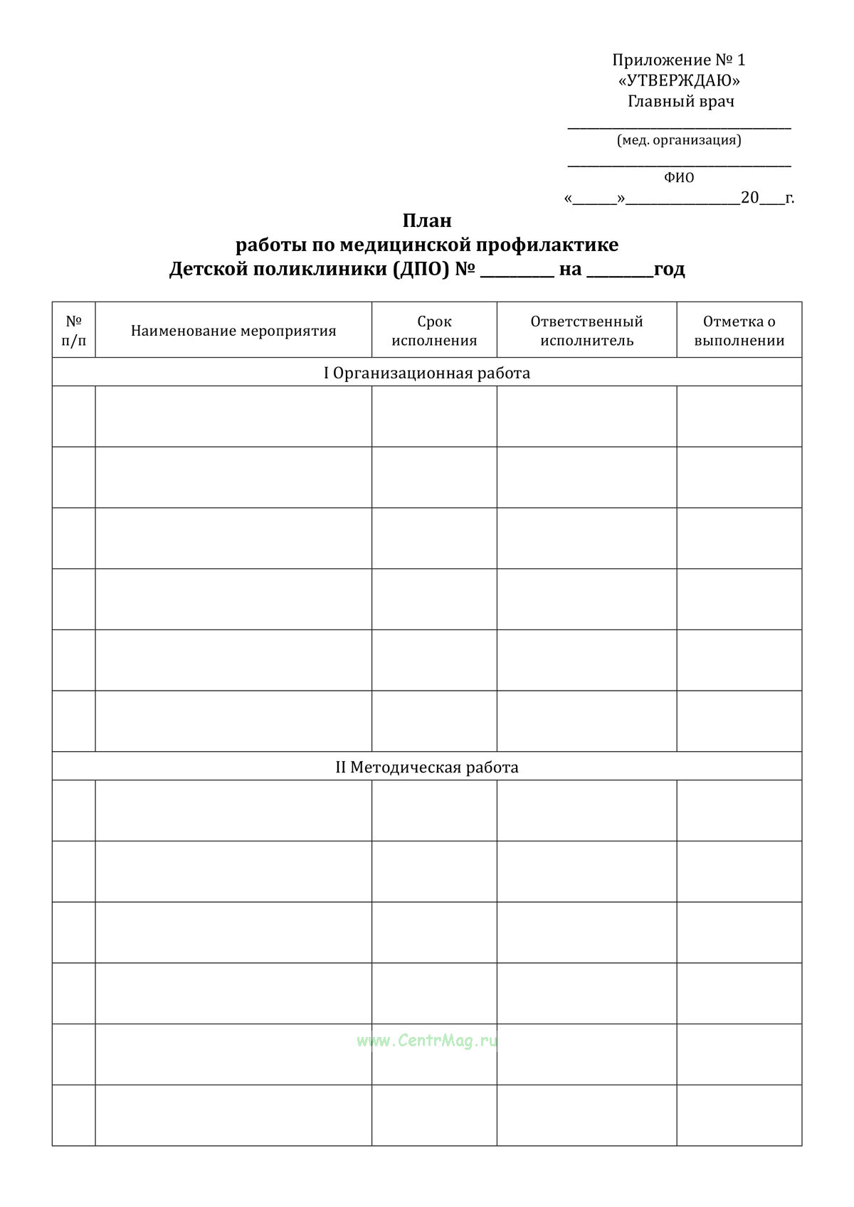 План работы по медицинской профилактике Детской поликлиники (ДПО) (Приложение 1) продается только как чистый незаполненный бланк, без печатей и подписей соответствует 149-ФЗ от 27.07.2006