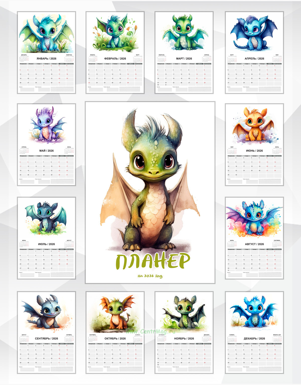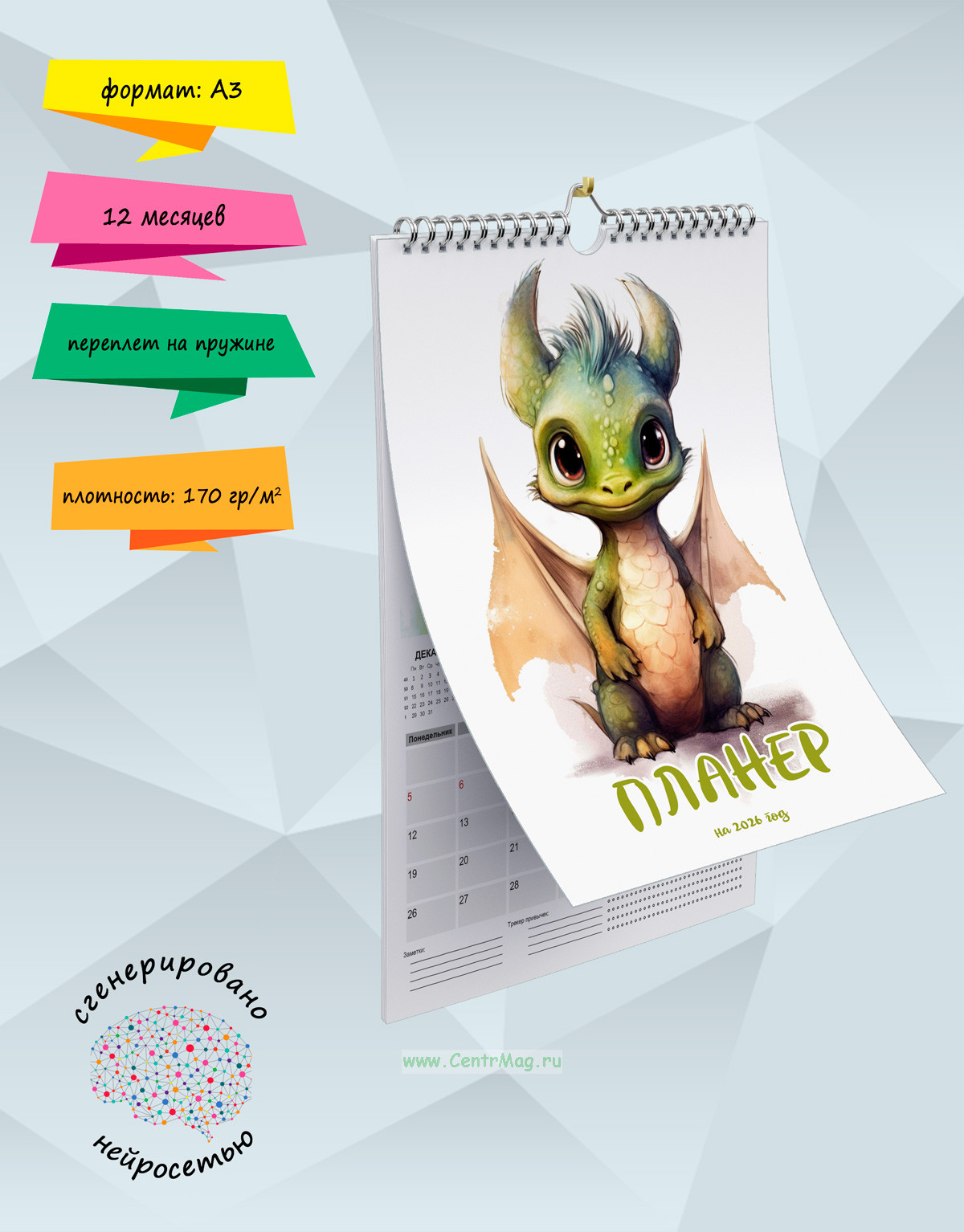 Календарь-планер настенный, перекидной "Дракоша" на 2026 год