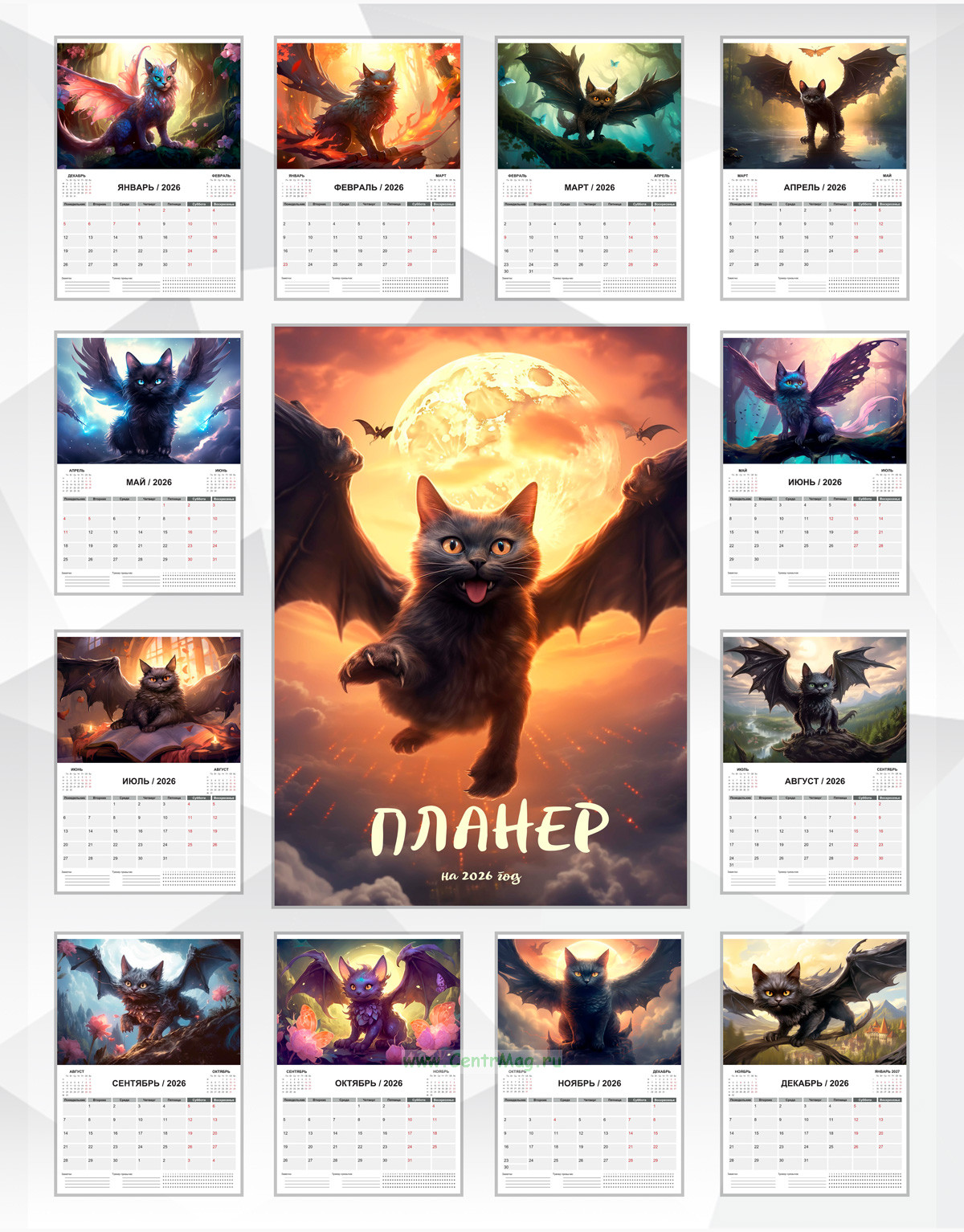 Календарь-планер настенный, перекидной "ДраКошка" на 2026 год