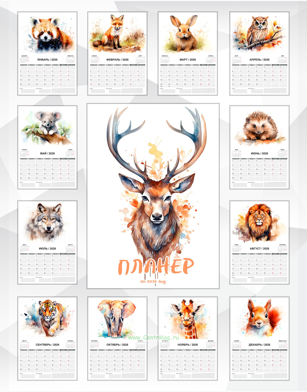 Календарь-планер настенный, перекидной "Лесные жители" на 2026 год
