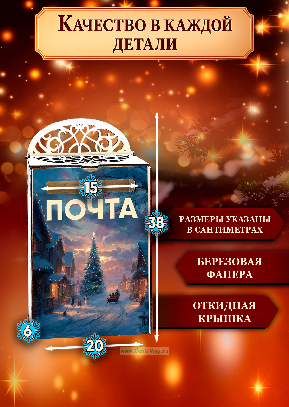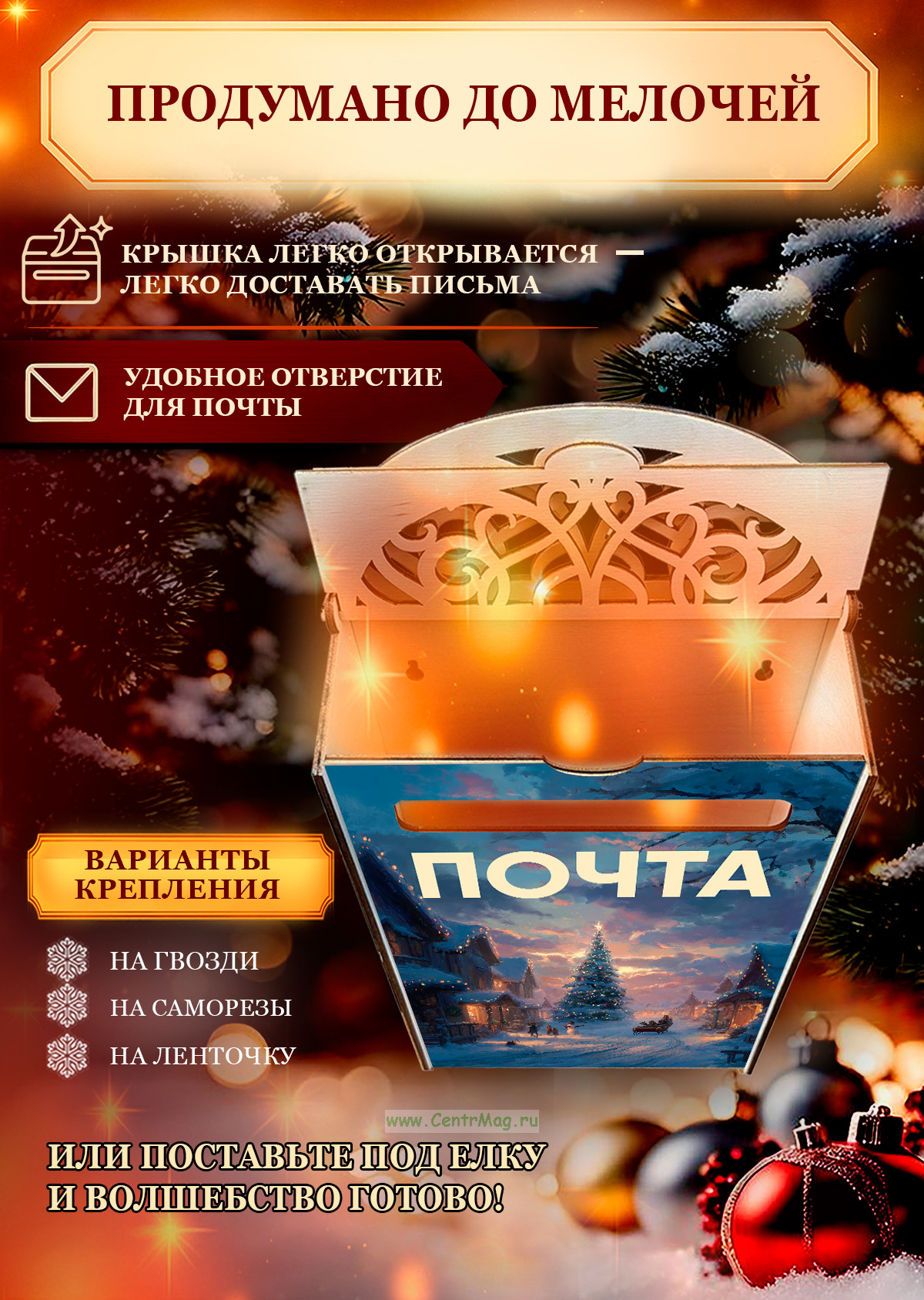 Почтовый ящик "Почта Деда Мороза" станет не только официальным украшением, но и приятной частью новогоднего декора, в котором дети смогут отправлять свои письма с пожеланиями для Деда Мороза.