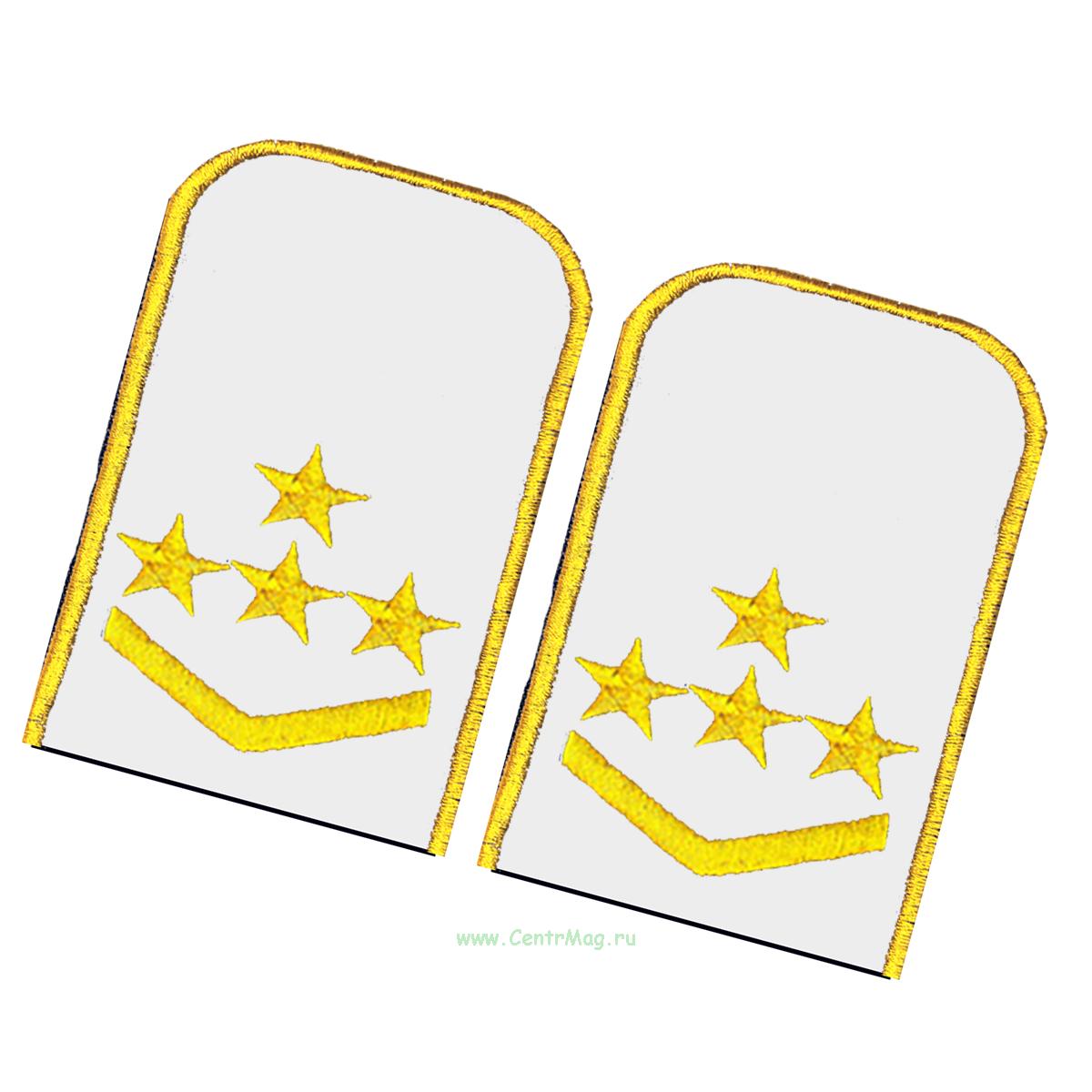Погоны РЖД. Вышитые. Округлые. Съемные. Белые. Четыре звезды и две петлицы (360 руб.)