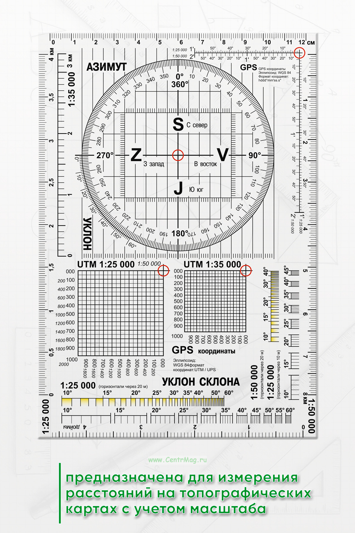 Полевая картографическая линейка предназначена для измерения расстояний на топографических картах с учетом масштаба, что облегчает проведение полевых работ и навигацию. Она позволяет быстро и точно определять реальные расстояния между объектами, основываясь на калибровке по масштабу карты.