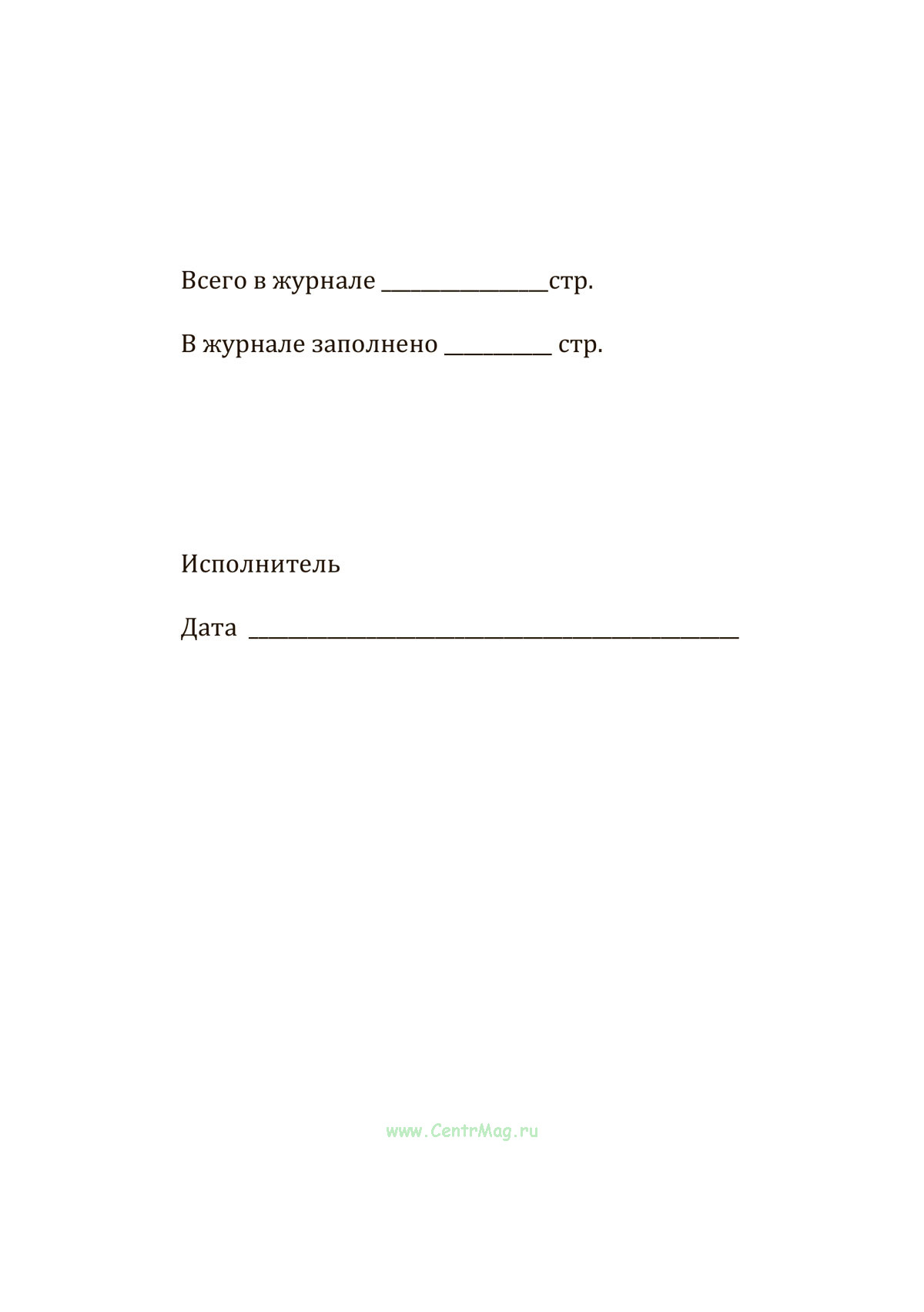 Журналы для автодорог, дорожного хозяйстваЖурналы для АЗС и АЗГСЖурналы для аптекЖурналы для архивовЖурналы для аттракционовЖурналы для банковЖурналы для бассейновЖурналы для бухгалтерииЖурналы для газовых хозяйств, газораспределительных систем, ГАЗПРОМаЖурналы для гостиниц, общежитий, хостеловЖурналы для грузоподъемных механизмовЖурналы для делопроизводстваЖурналы для драгметалловЖурналы для ЖКХЖурналы для канатных дорог, фуникулеровЖурналы для кладбищЖурналы для конструкторских, научно-техническая документацияЖурналы для лесных хозяйствЖурналы для лифтовЖурналы для медицинских учрежденийЖурналы для МЧСЖурналы для нефтебазЖурналы для нефтепромысла, нефтепроводовЖурналы для образовательных учрежденийЖурналы для парикмахерских, салонов красоты, маникюрных, педикюрных кабинетовЖурналы для проверки и контроля госорганами, контролирующими организациямиЖурналы для промышленностиЖурналы для работ с повышенной опасностьюЖурналы для регулирования алкогольного рынкаЖурналы для сельских хозяйств, ветеринарииЖурналы для складовЖурналы для снегоплавильных пунктовЖурналы для стройки, строительстваЖурналы для тепловых энергоустановок, котельныхЖурналы для транспортаЖурналы для туризмаЖурналы для учреждений культуры, библиотек, музеевЖурналы для церкви, религиозных организацийЖурналы для шахт, рудников, метрополитенов, подземных сооруженийЖурналы для электроустановокЖурналы и бланки для армии, вооруженных силЖурналы и бланки для нотариусов, юристов, адвокатовЖурналы и бланки для организаций пищевого производства, общепита и пищевых блоковЖурналы и бланки для организаций, занимающихся охраной объектов и частных лицЖурналы и бланки для ФТС РФ (таможни)Журналы и бланки по экологииЖурналы и бланки, используемые в торговле, бытовом обслуживанииЖурналы и бланки, относящиеся к нескольким отраслямЖурналы по геодезии, геологииЖурналы по метрологииЖурналы по охране труда и технике безопасностиЖурналы по пожарной безопасностиЖурналы по психологииЖурналы по санитарии, проверкам СЭСЖурналы по связиЖурналы по эксплуатации зданий и сооруженийЖурналы по энергетикеЖурналы, бланки, формы для кадровых работЖурналы, бланки, формы документов для органов прокуратуры и суда, минюста, пенитенциарной системыЖурналы, бланки, формы документов МВД РФ, РосгвардииКомплекты документов и журналовОбложки для журналов и удостоверенийСамокопирующиеся бланки