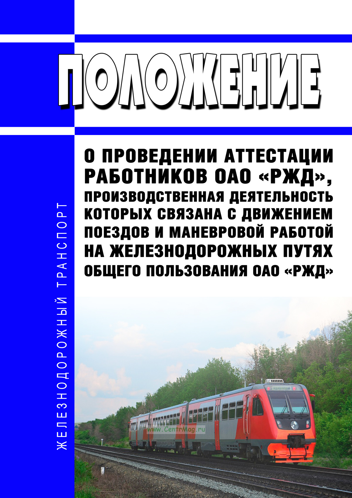 См. Также Журнал учета выдачи свидетельств о прохождении аттестации работников, производственная деятельность которых связана с движением поездов и маневровой работой на железнодорожных путях общего пользования ОАО «РЖД» (Распоряжение ОАО "РЖД" от 17.01.2015 № 66р)