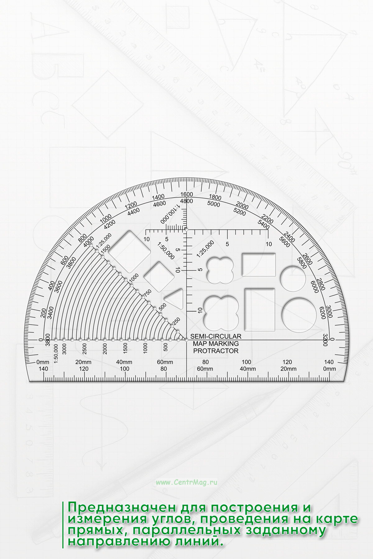 Транспортир предназначен для построения и измерения углов, проведения на карте прямых, параллельных заданному направлению линий.