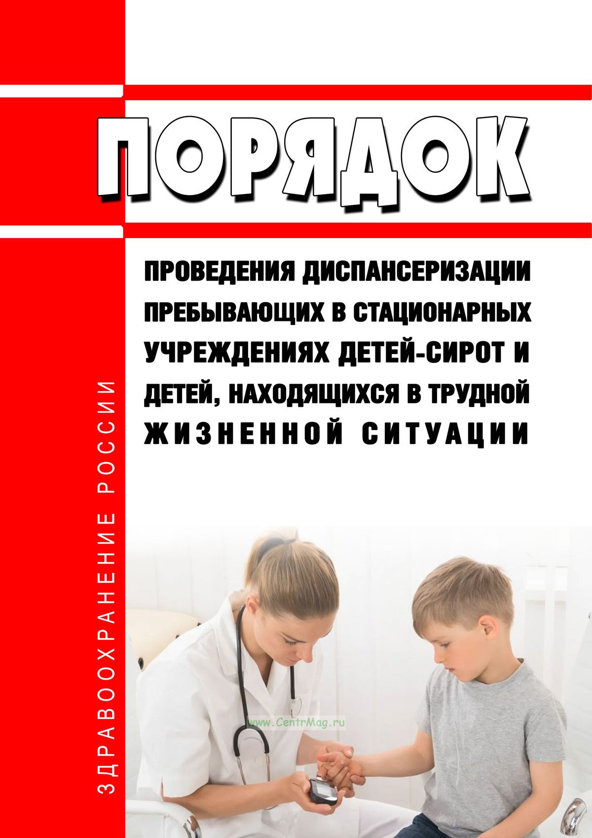 Порядок проведения диспансеризации пребывающих в стационарных учреждениях детей-сирот и детей, находящихся в трудной жизненной ситуации, регламентирует организацию и проведение медицинскими организациями, участвующими в реализации территориальных программ государственных гарантий бесплатного оказания гражданам медицинской помощи, диспансеризации пребывающих в стационарных учреждениях детей-сирот и детей, находящихся в трудной жизненной ситуации.