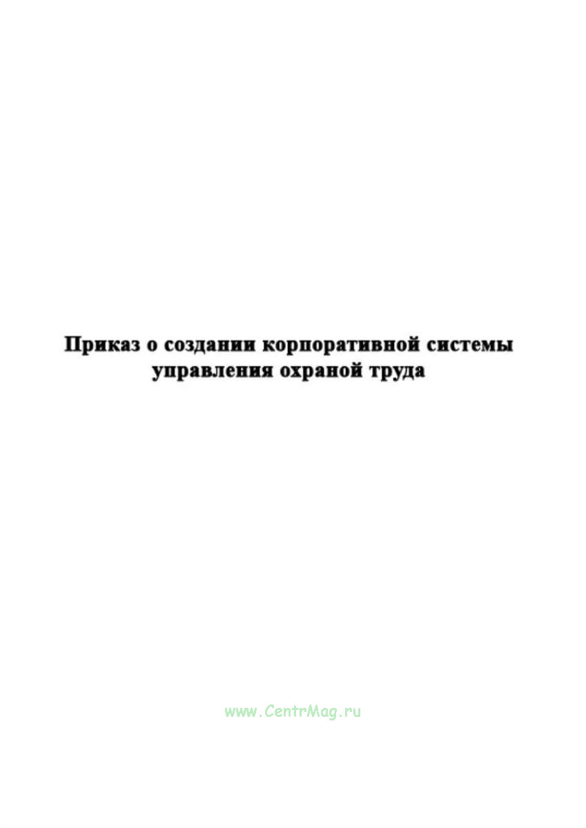 Форма приказа о создании корпоративной системы управления охраны труда соответствует Приложению 7 к сборнику Приказы по охране труда. Требования к содержанию, структуре, стилю изложения и оформлению.