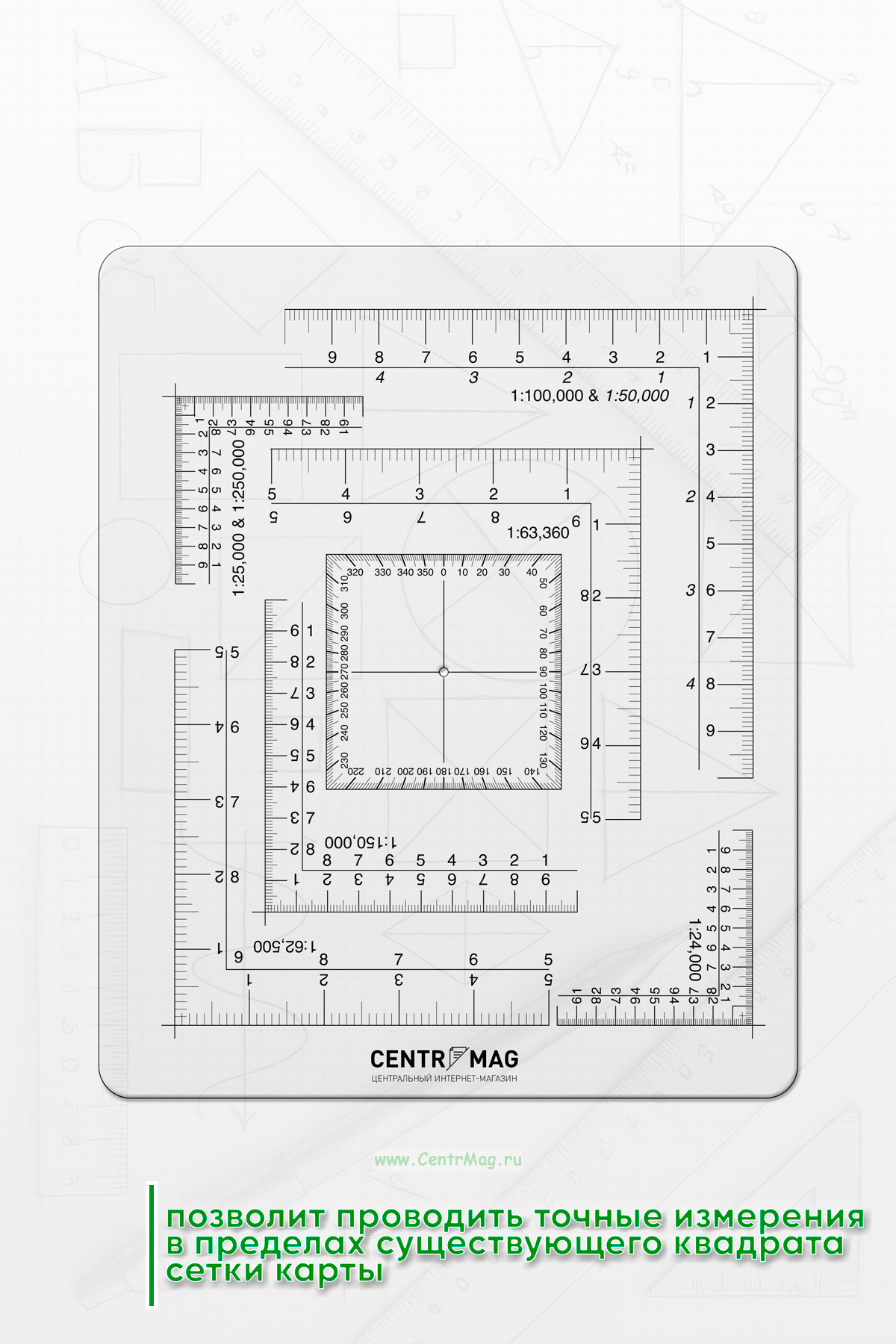 Угловая линейка позволит проводить точные измерения в пределах существующего квадрата сетки карты.