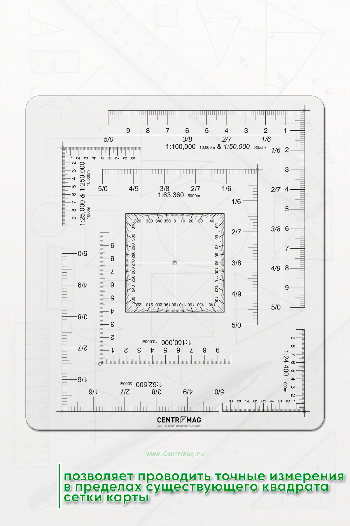 Угловая линейка позволит проводить точные измерения в пределах существующего квадрата сетки карты. На каждой угловой шкале есть небольшое отверстие, позволяющее ставить отметки на карте.