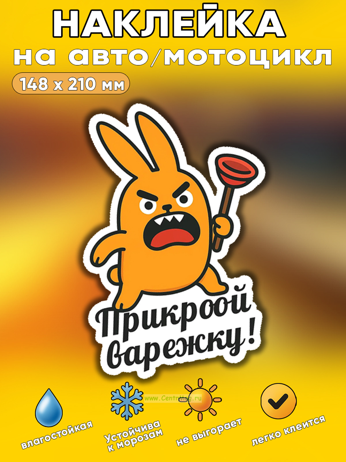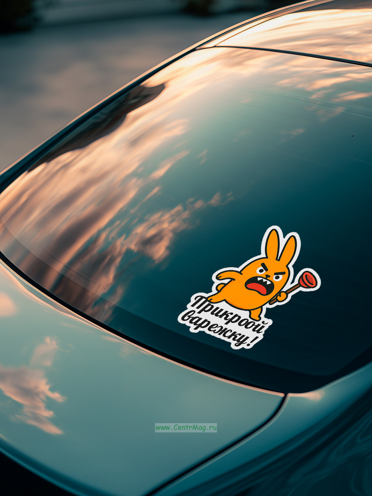 Прикольная наклейка "Прикроой варежку" (злой заяц), А5