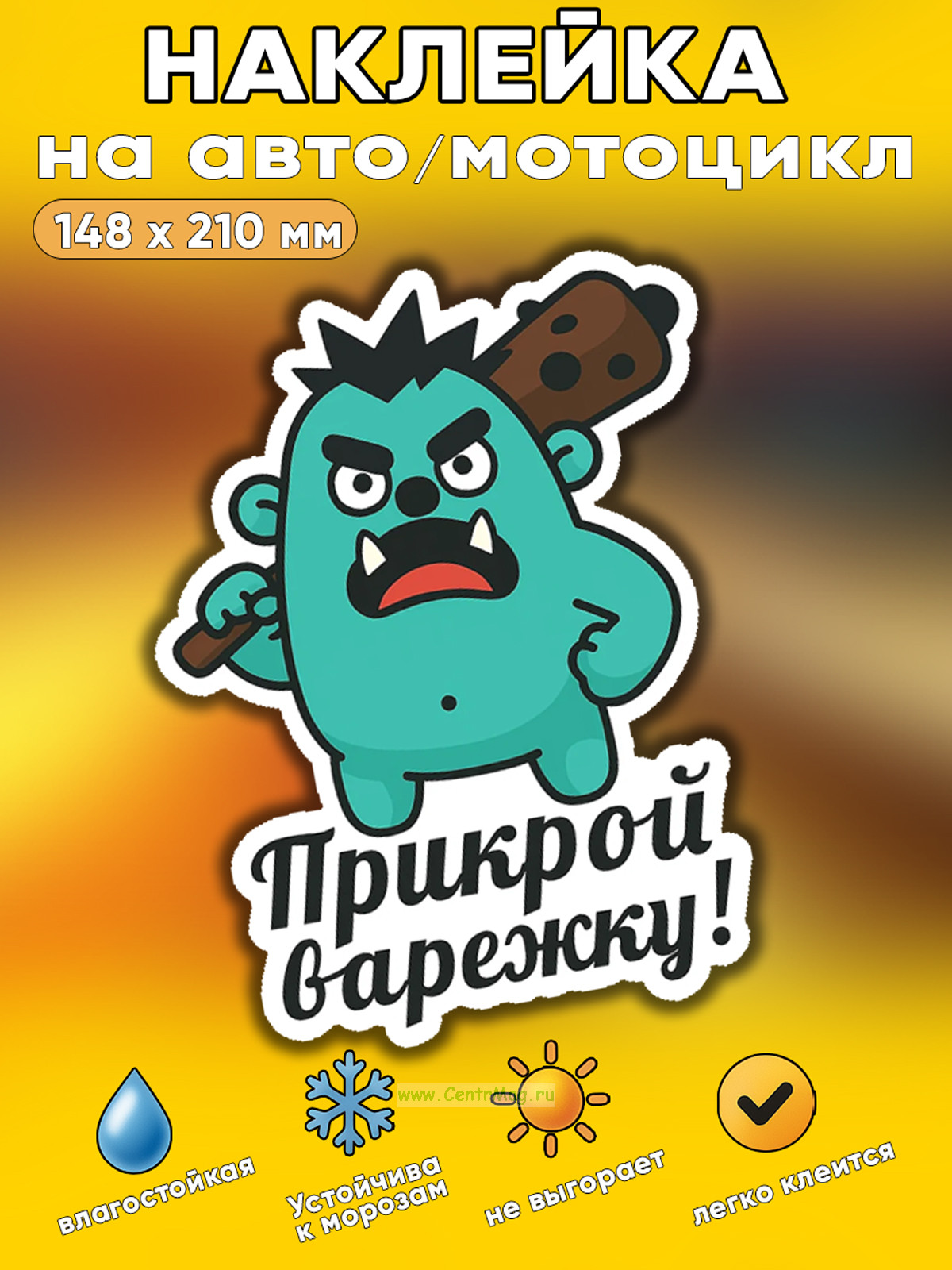 Прикольная наклейка "Прикрой варежку" (зеленое чудище), А5