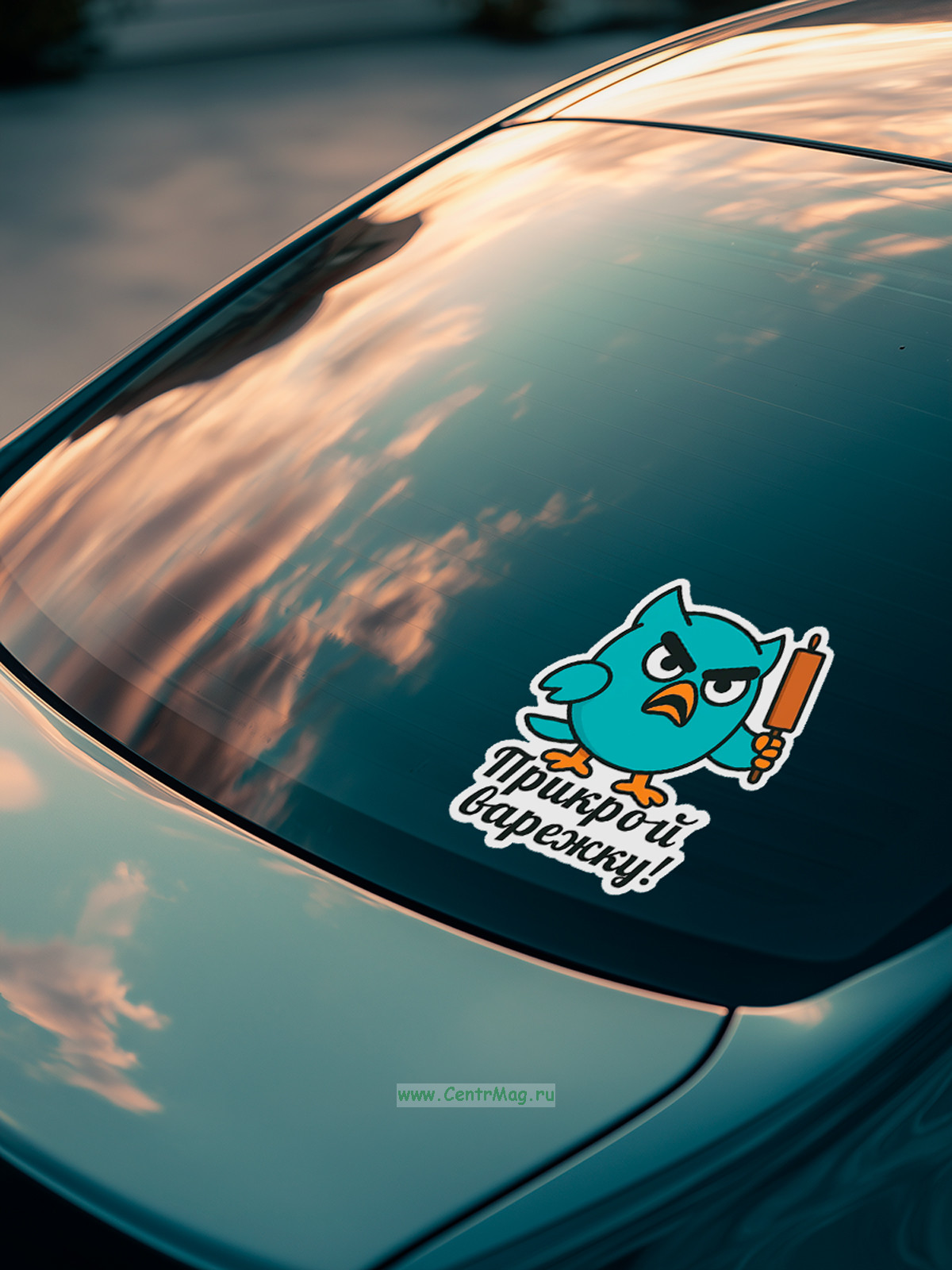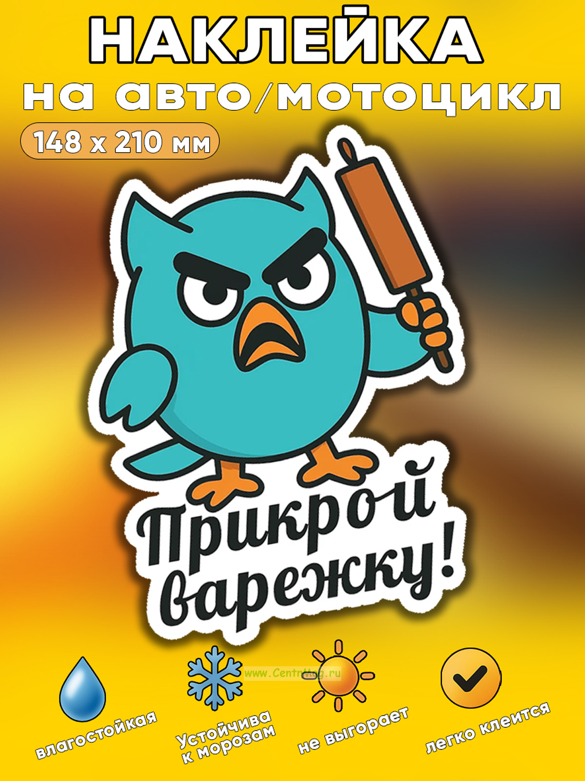 Прикольная наклейка "Прикрой варежку" (злая сова), А5