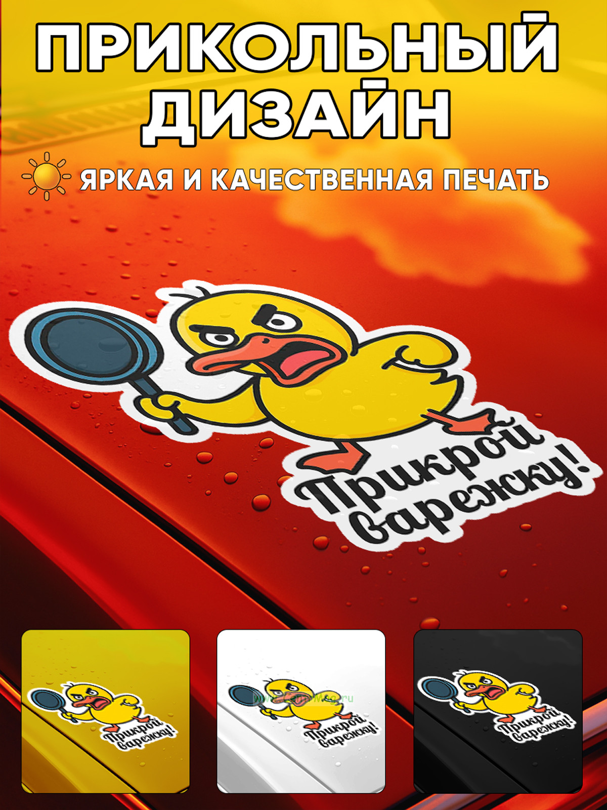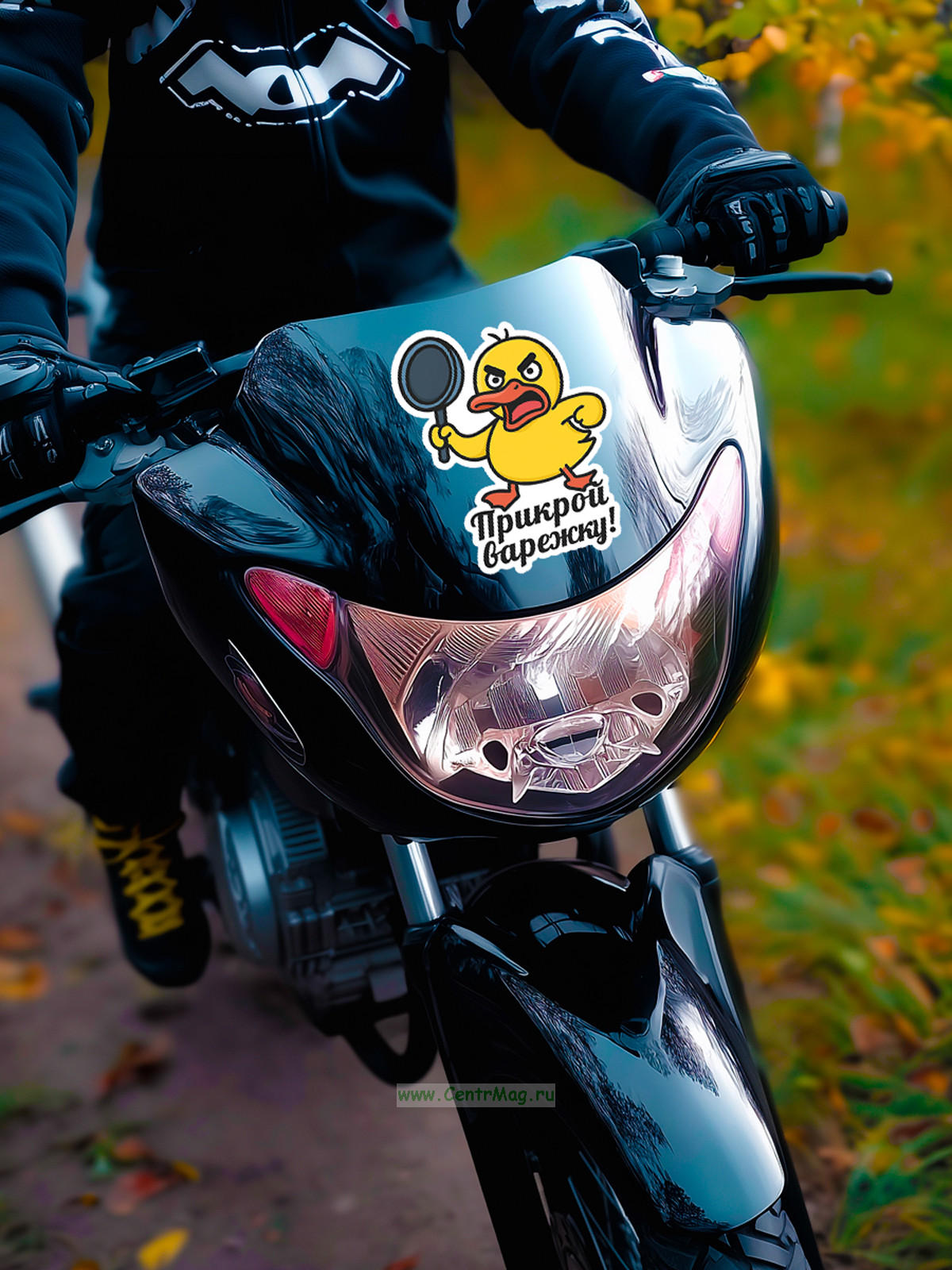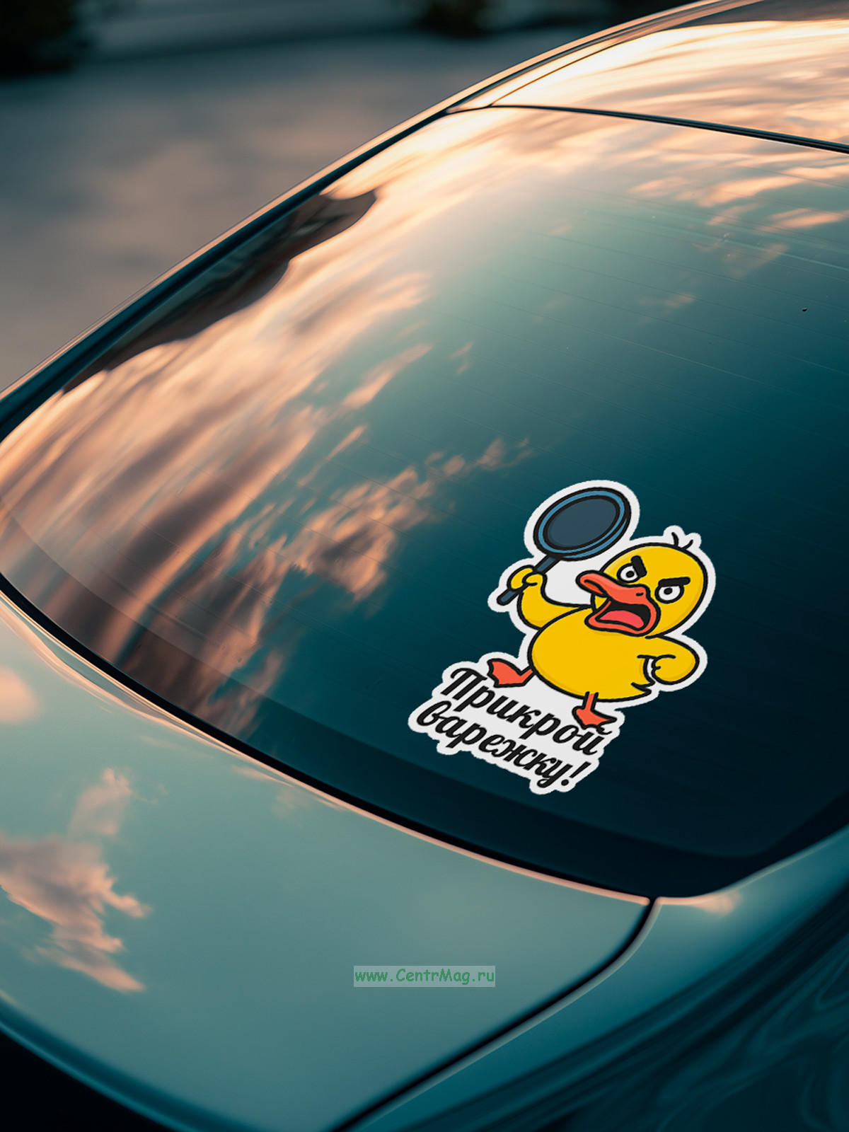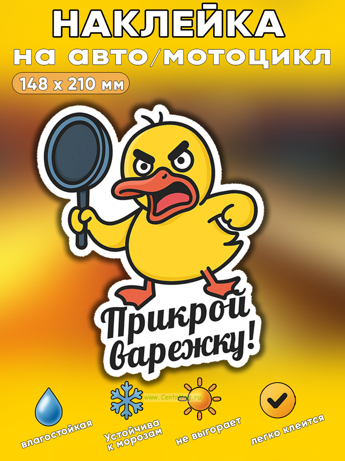 Прикольная наклейка "Прикрой варежку" (злая утка), А5