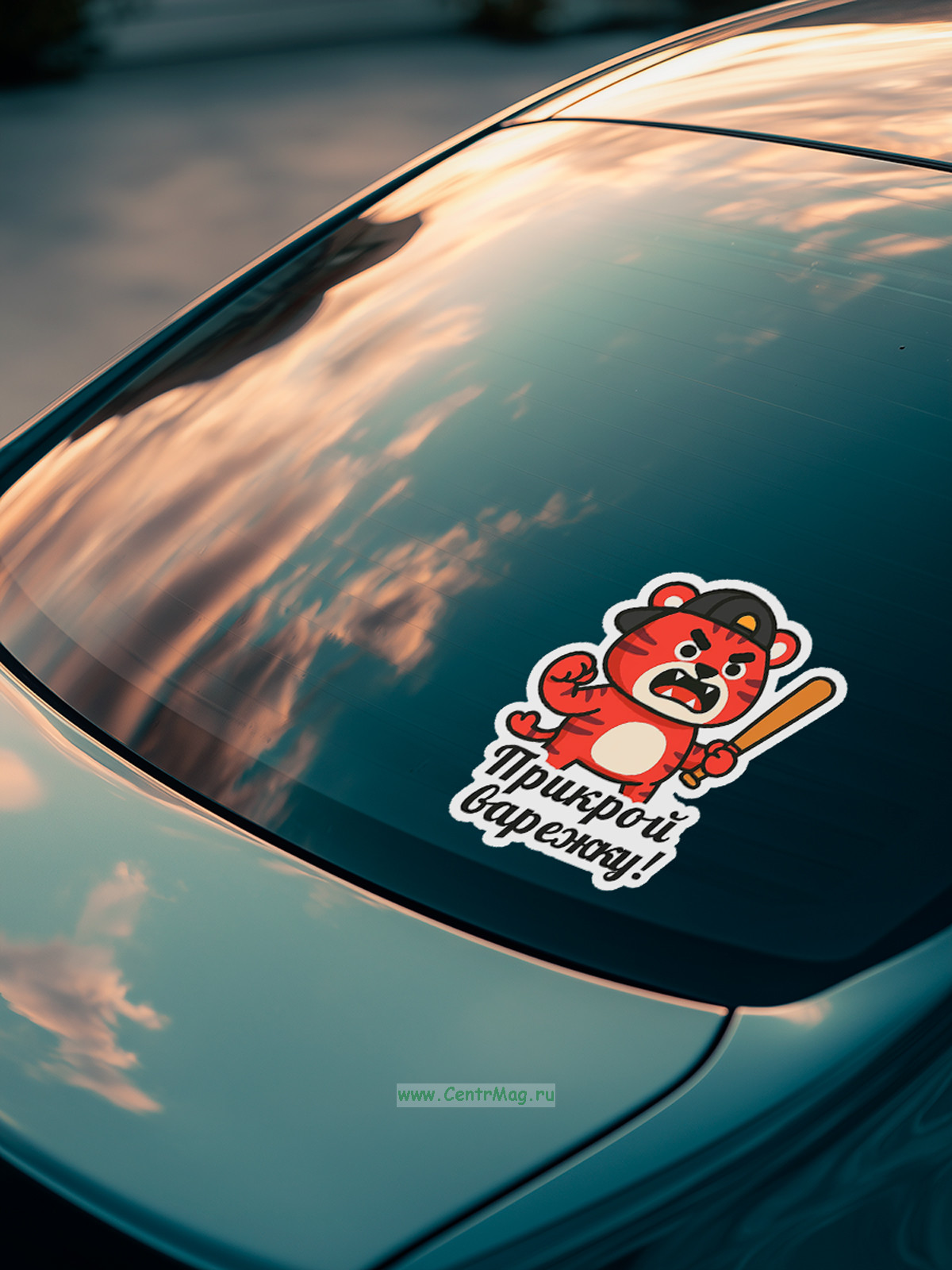 Прикольная наклейка "Прикрой варежку" (злой тигр), А5