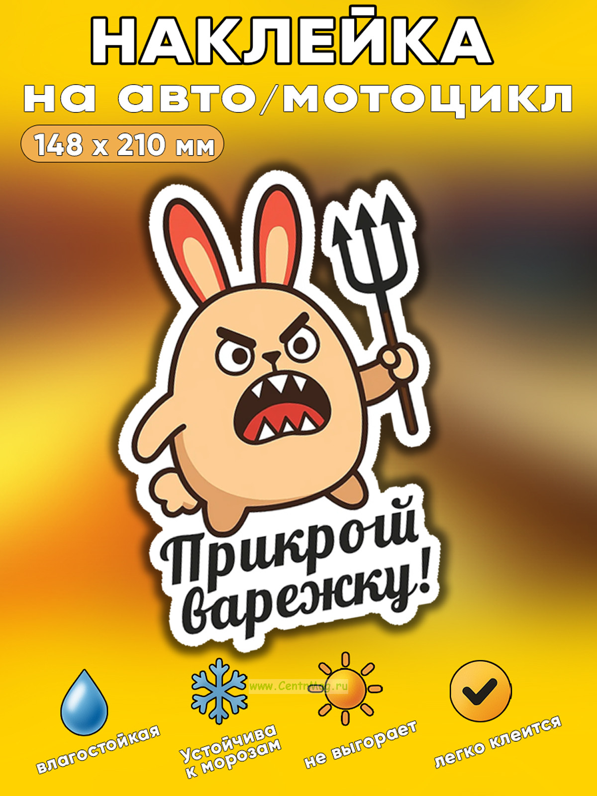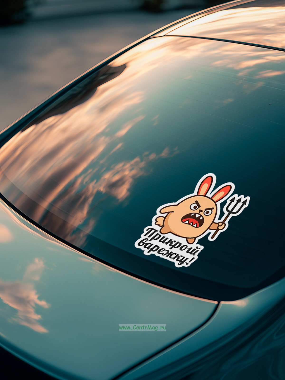 Прикольная наклейка "Прикрой варежку" (злой заяц), А5