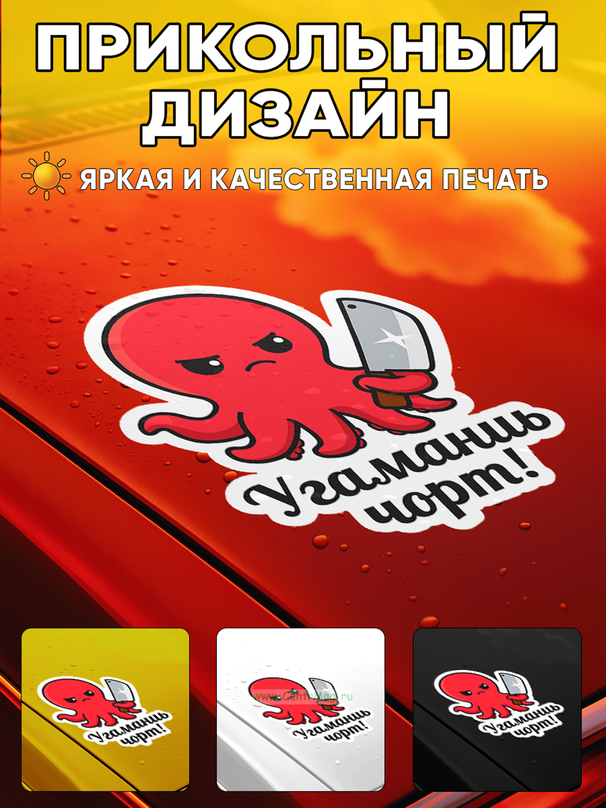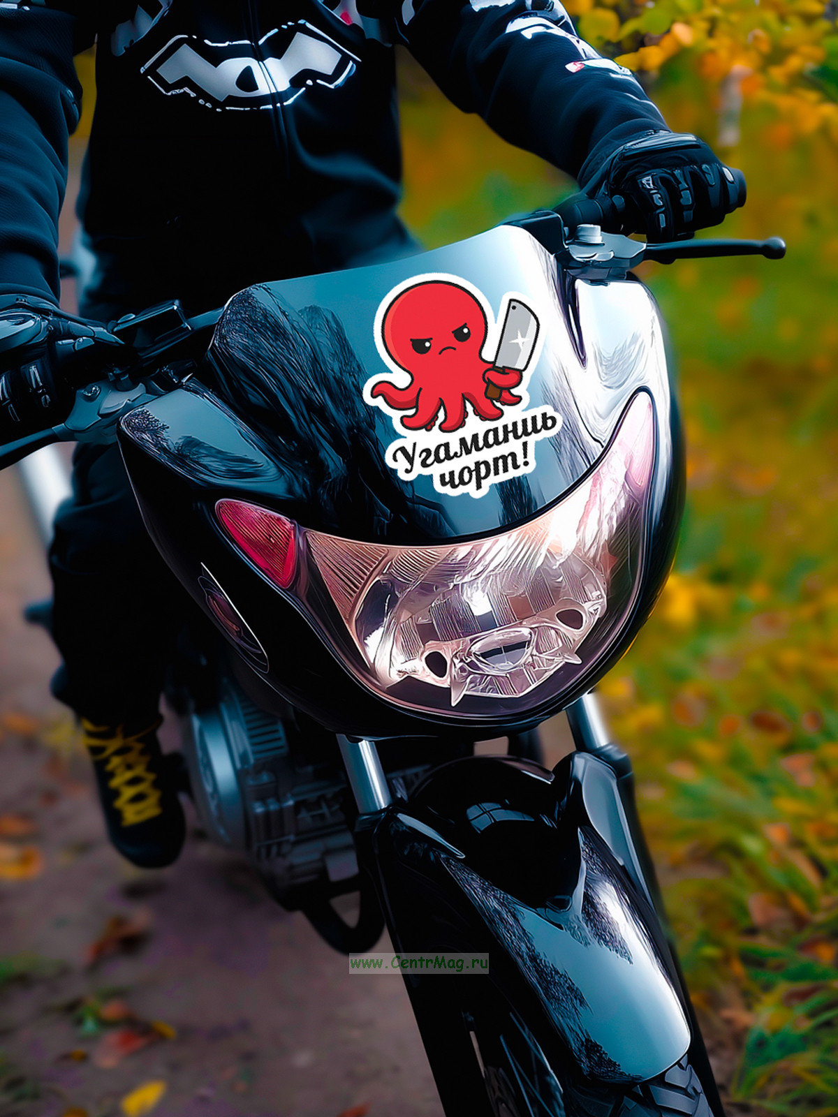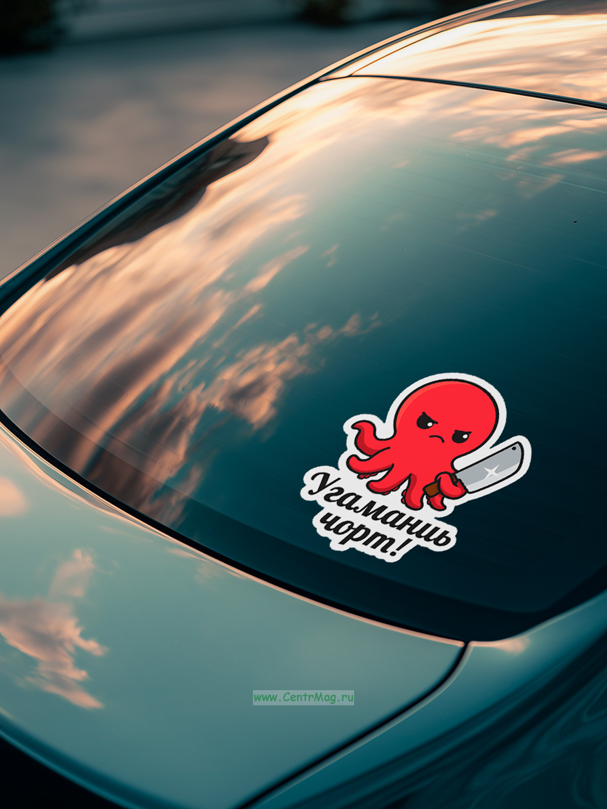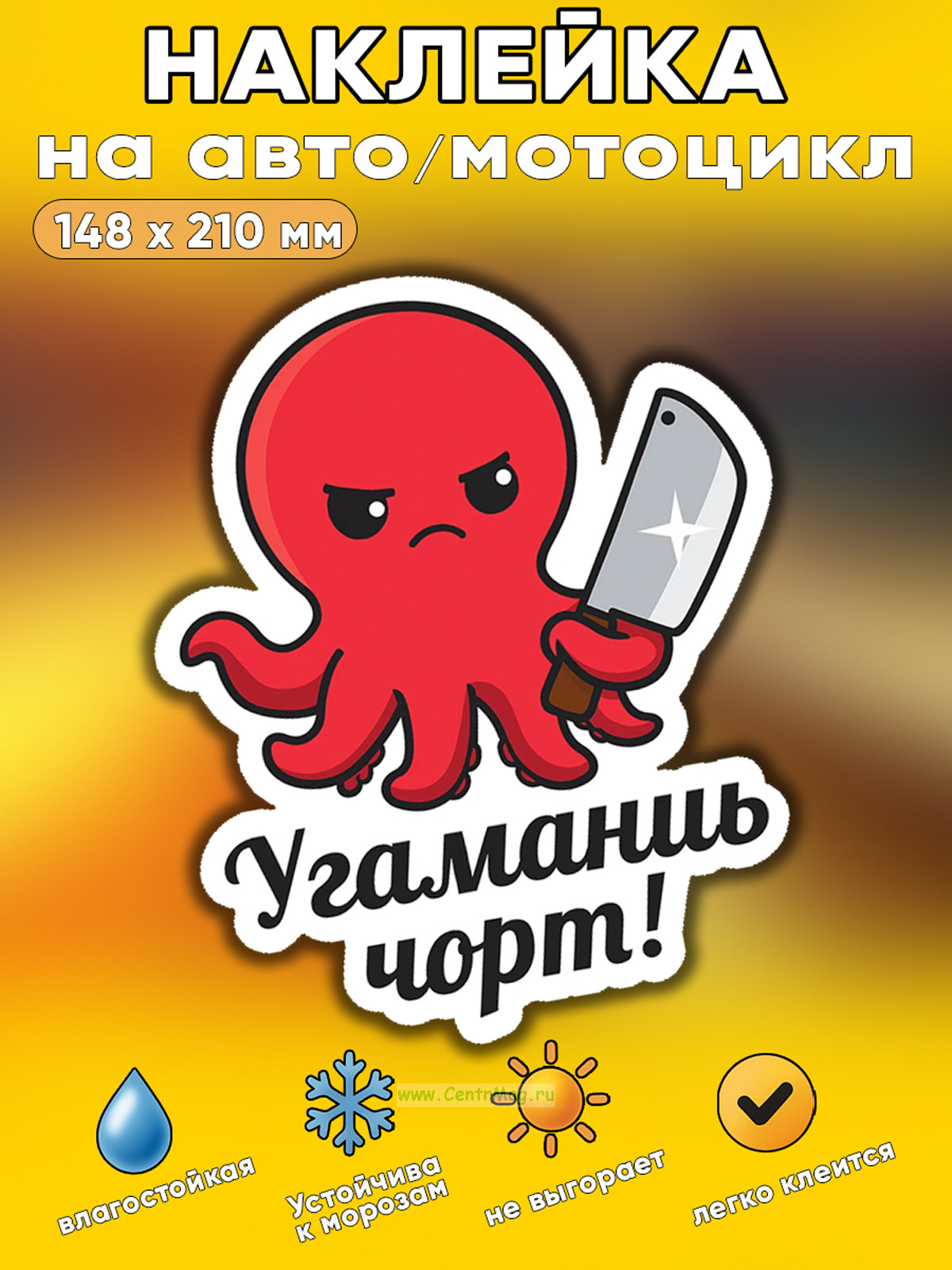 Прикольная наклейка "Угаманиь чорт" (злой осминог), А5