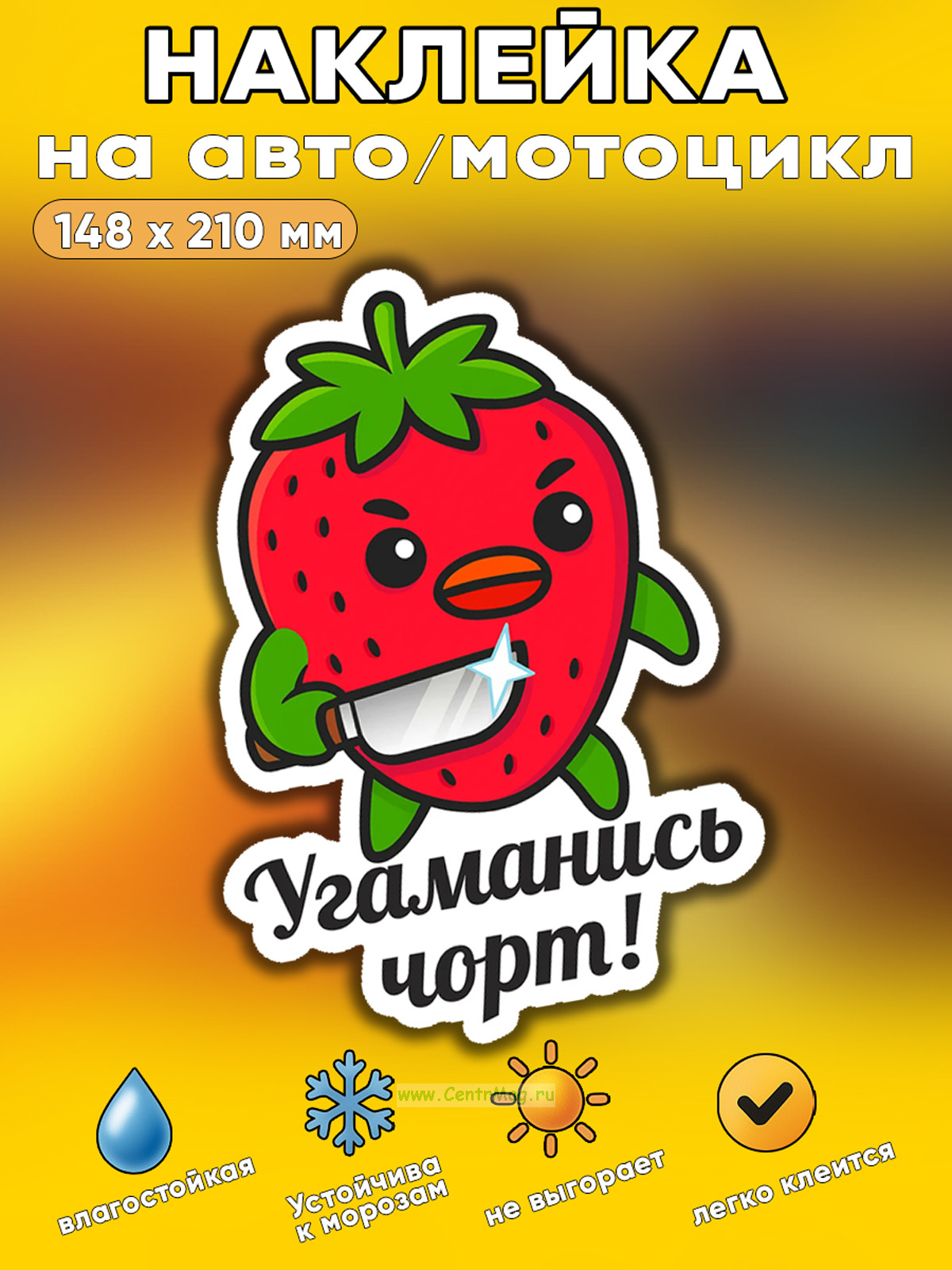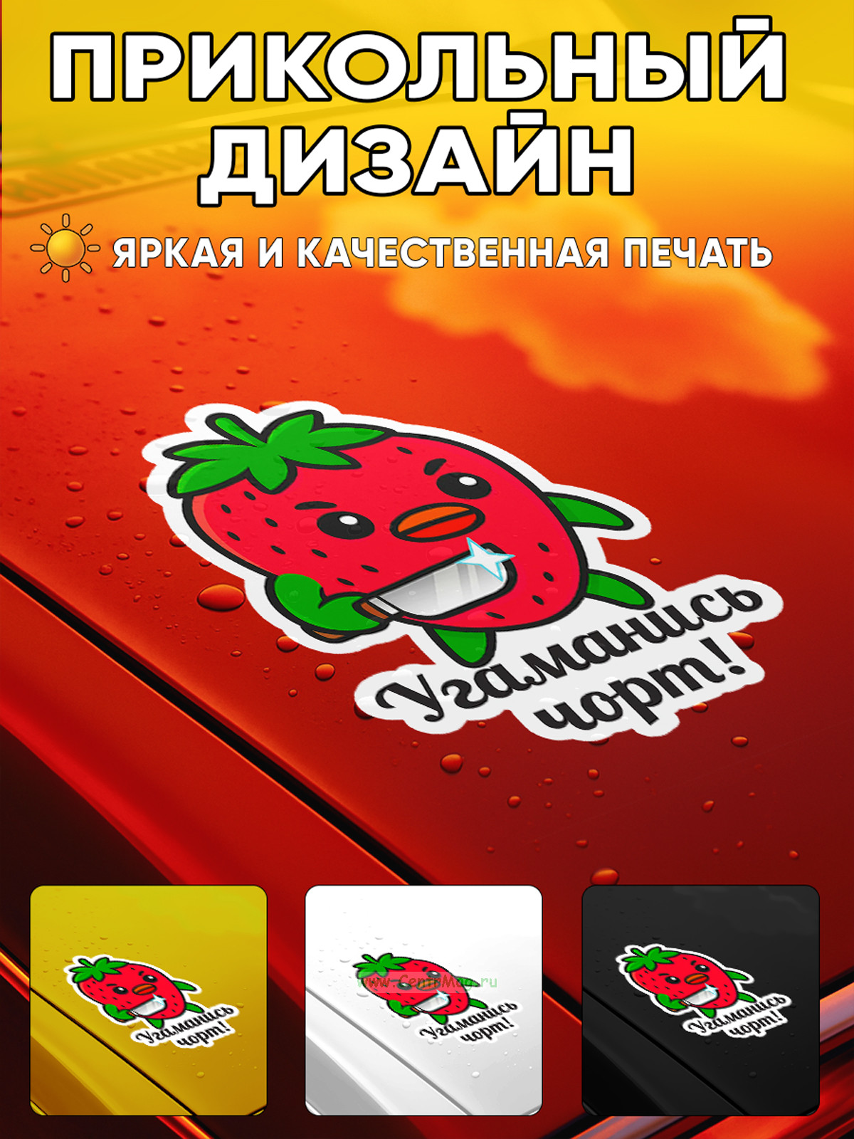 Прикольная наклейка "Угаманись чорт" (коварная клубника), А5