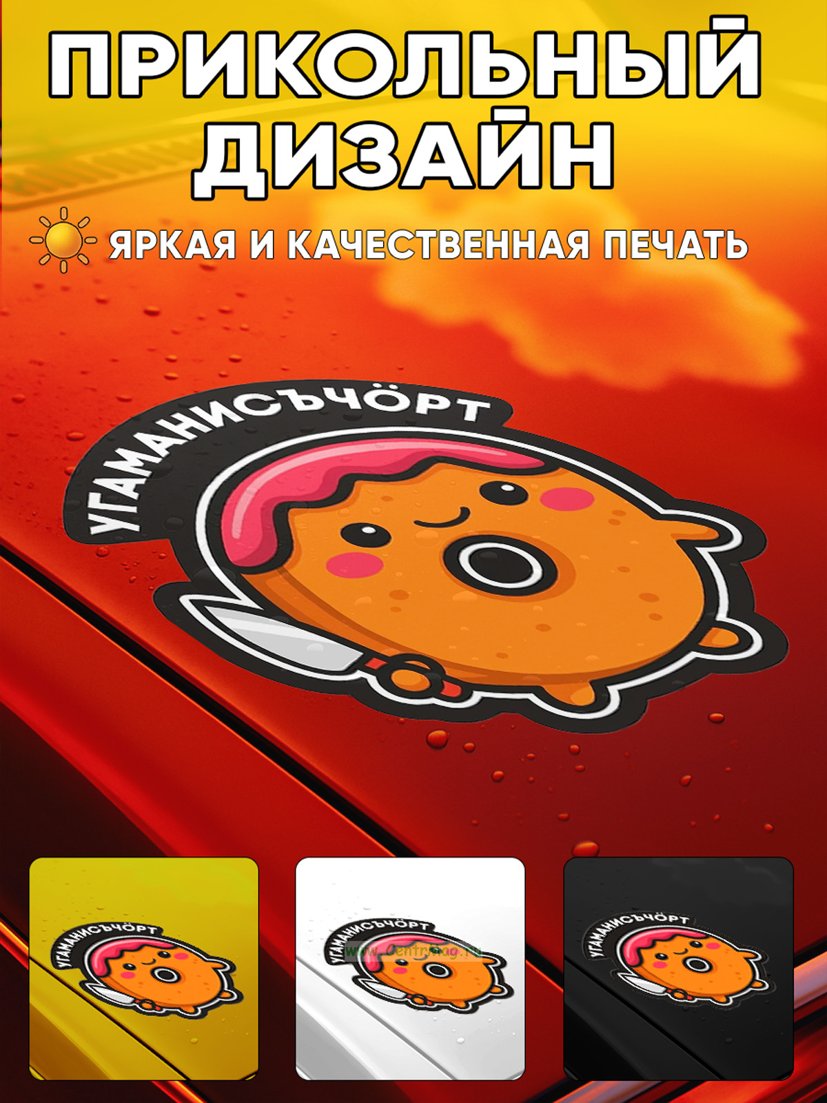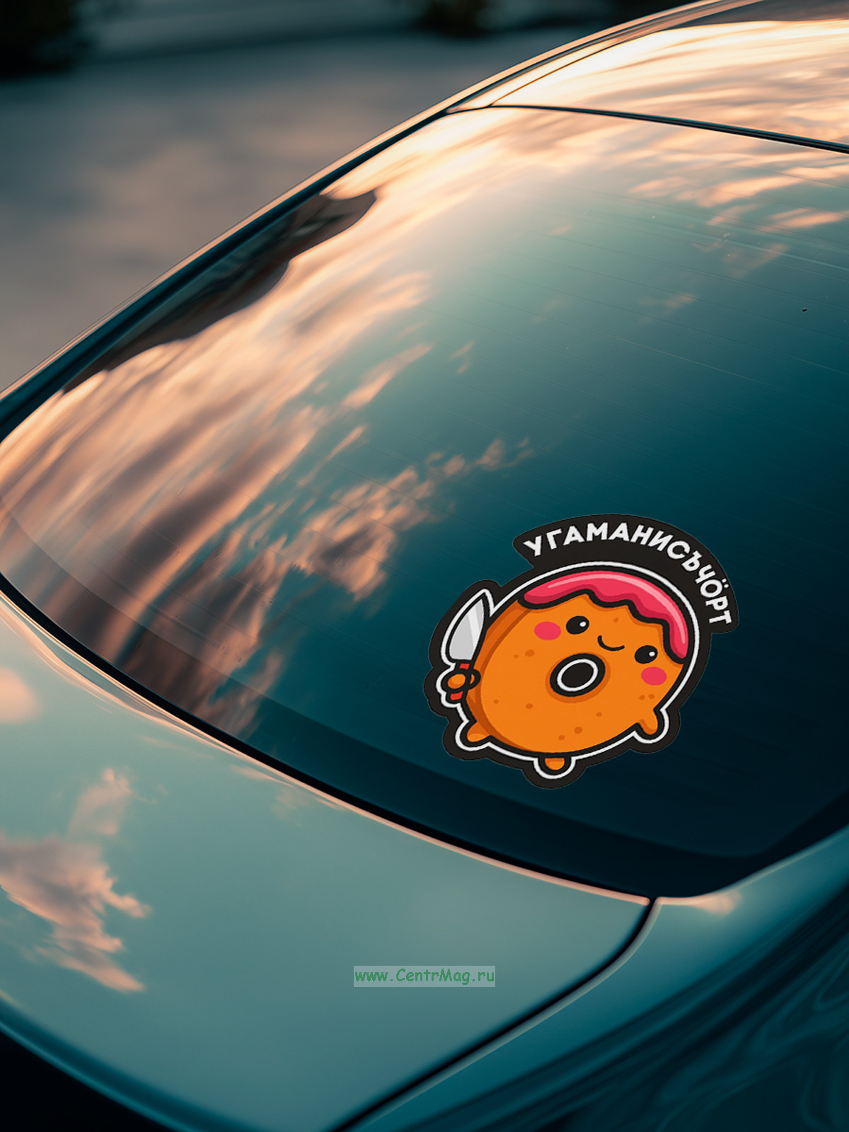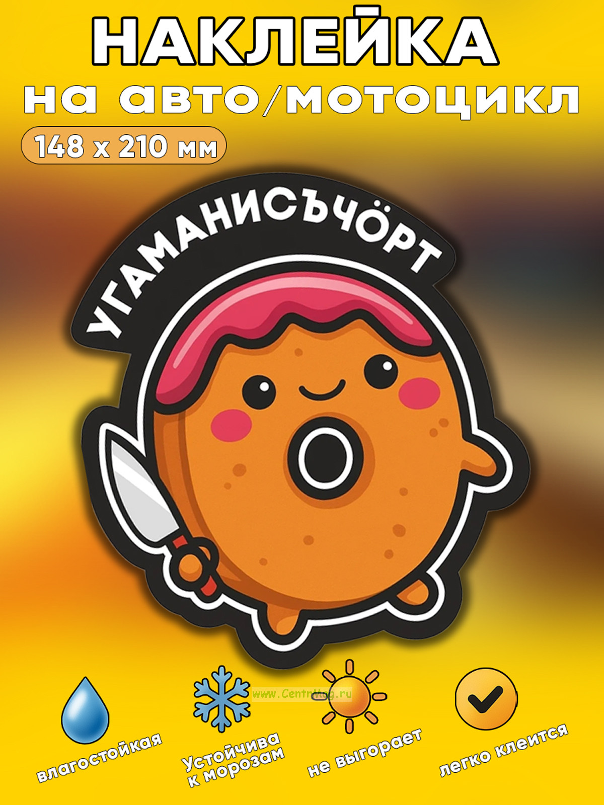 Прикольная наклейка "Угаманисъчорт" (пончик), А5