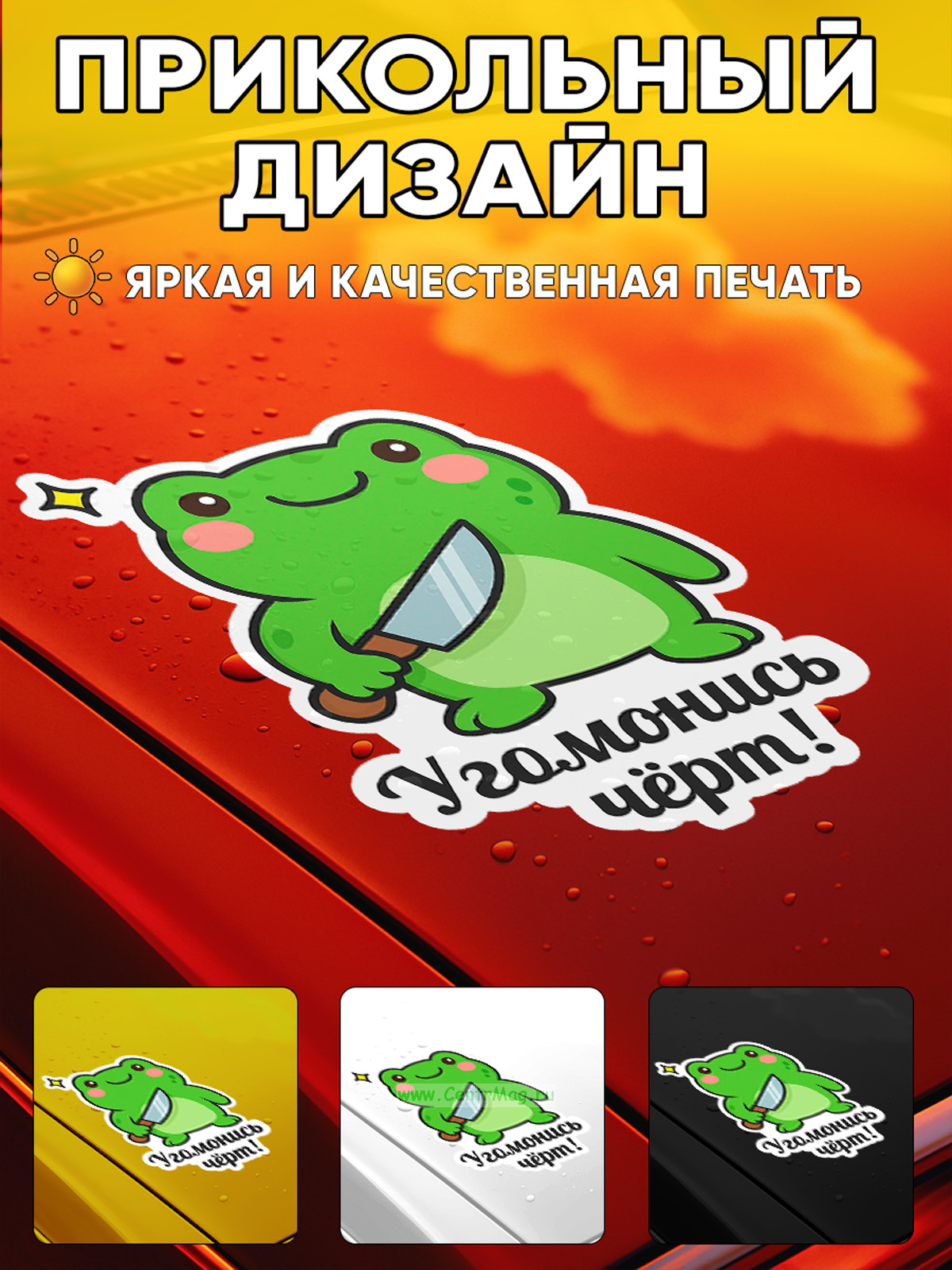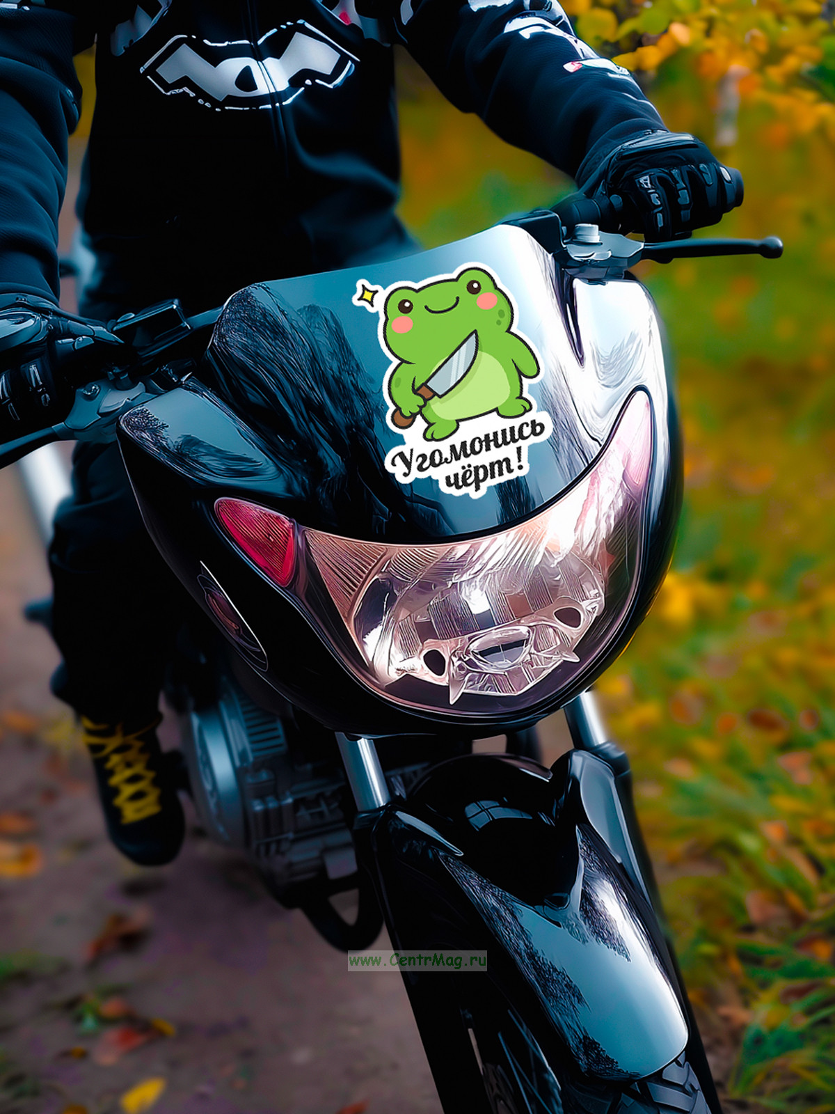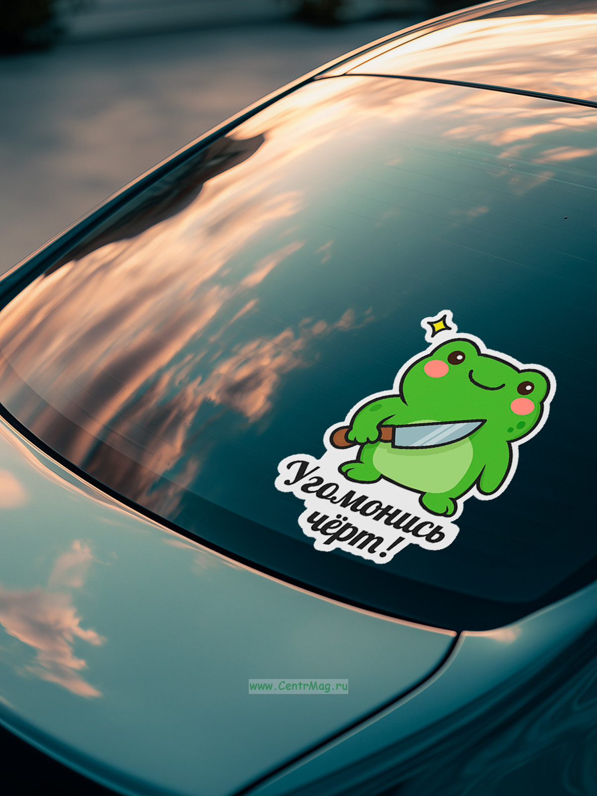 Прикольная наклейка "Угомонись черт" (злая лягушка), А5
