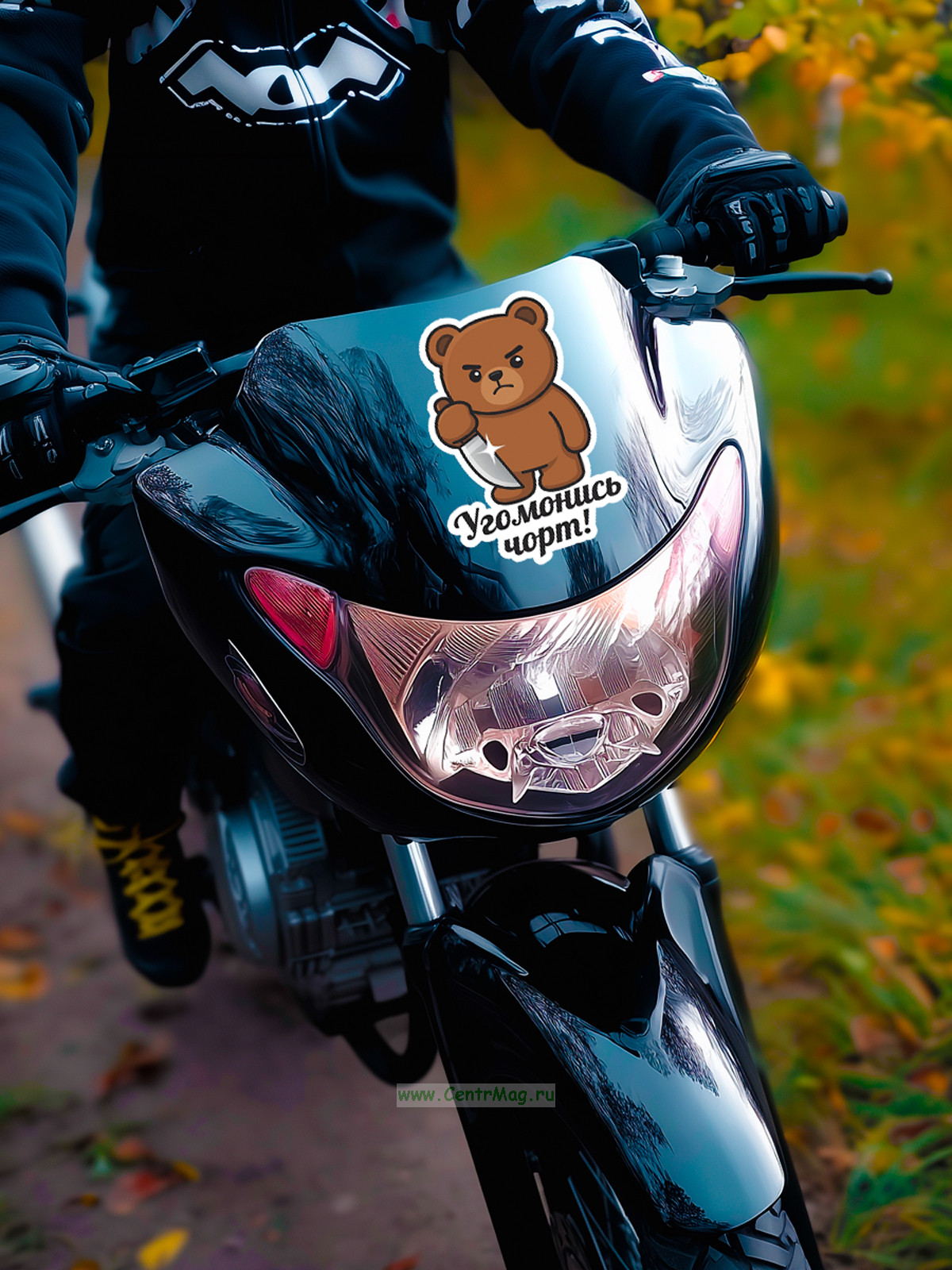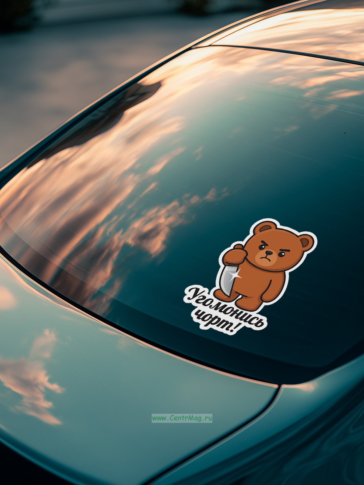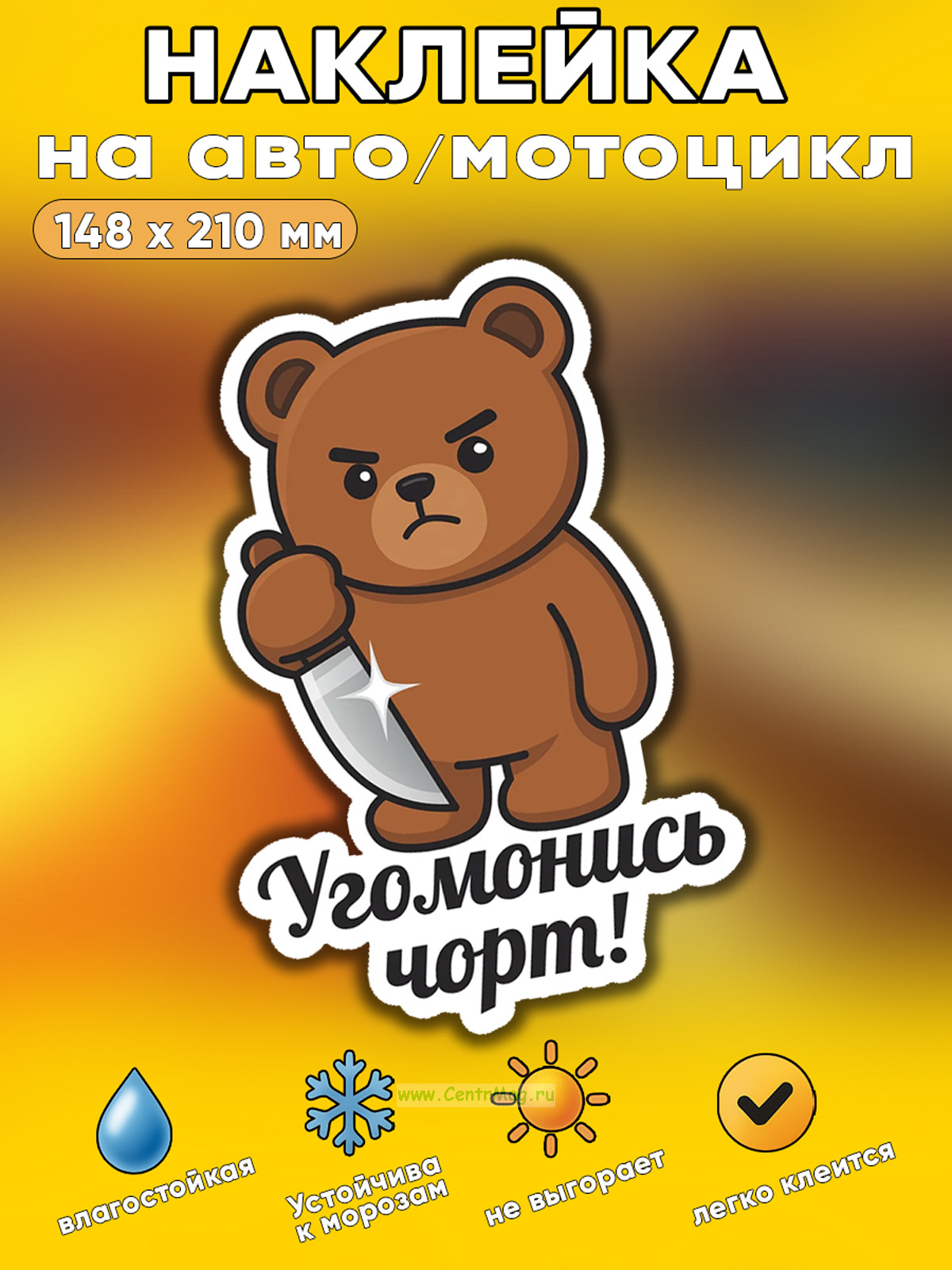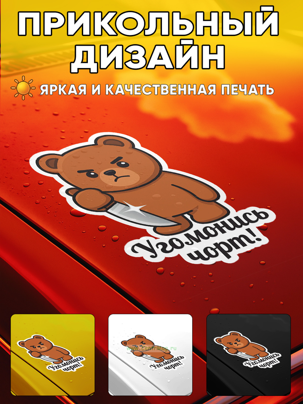 Прикольная наклейка "Угомонись чорт" (злой медведь), А5