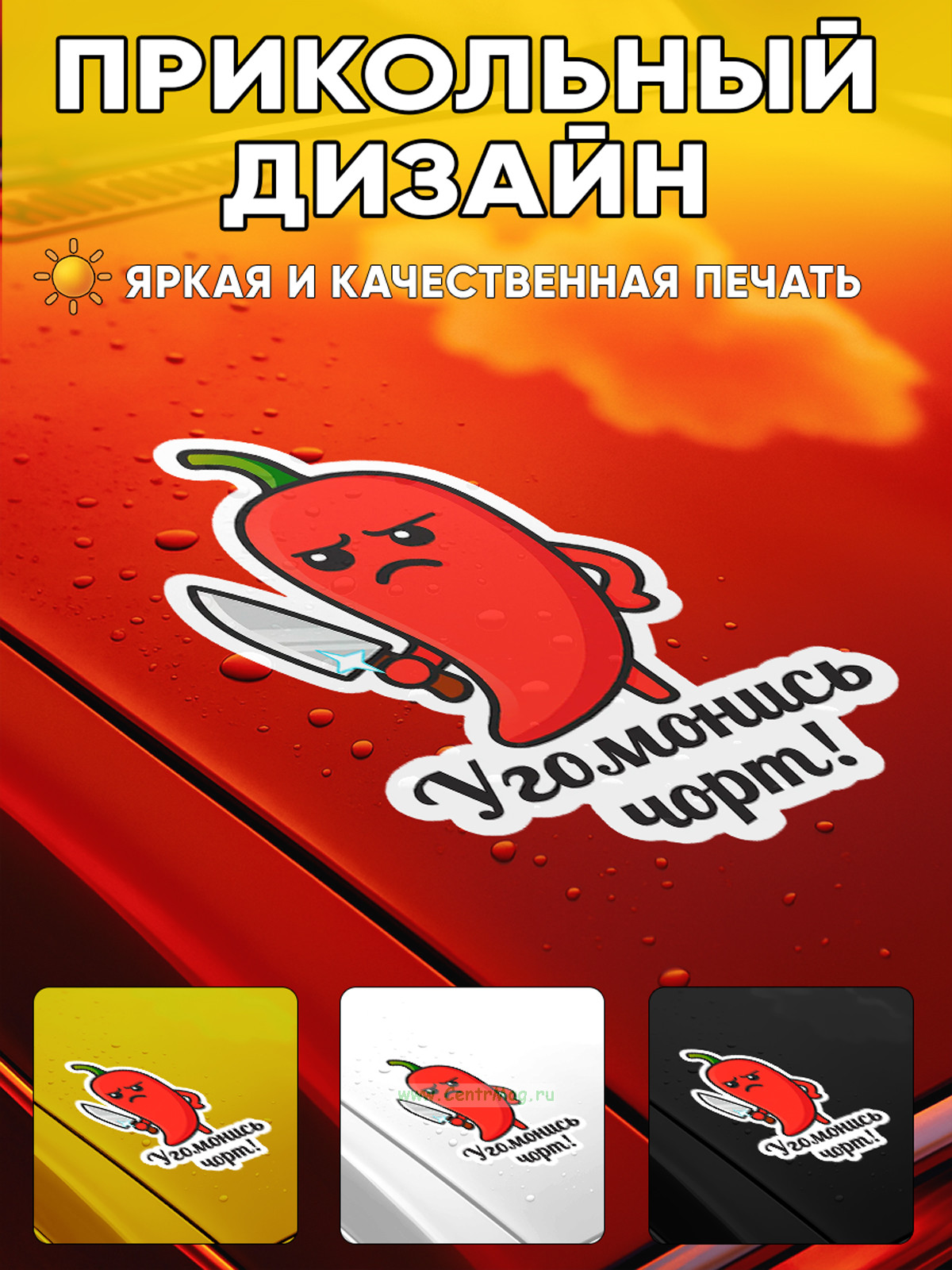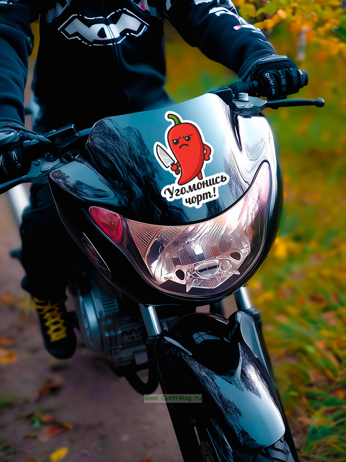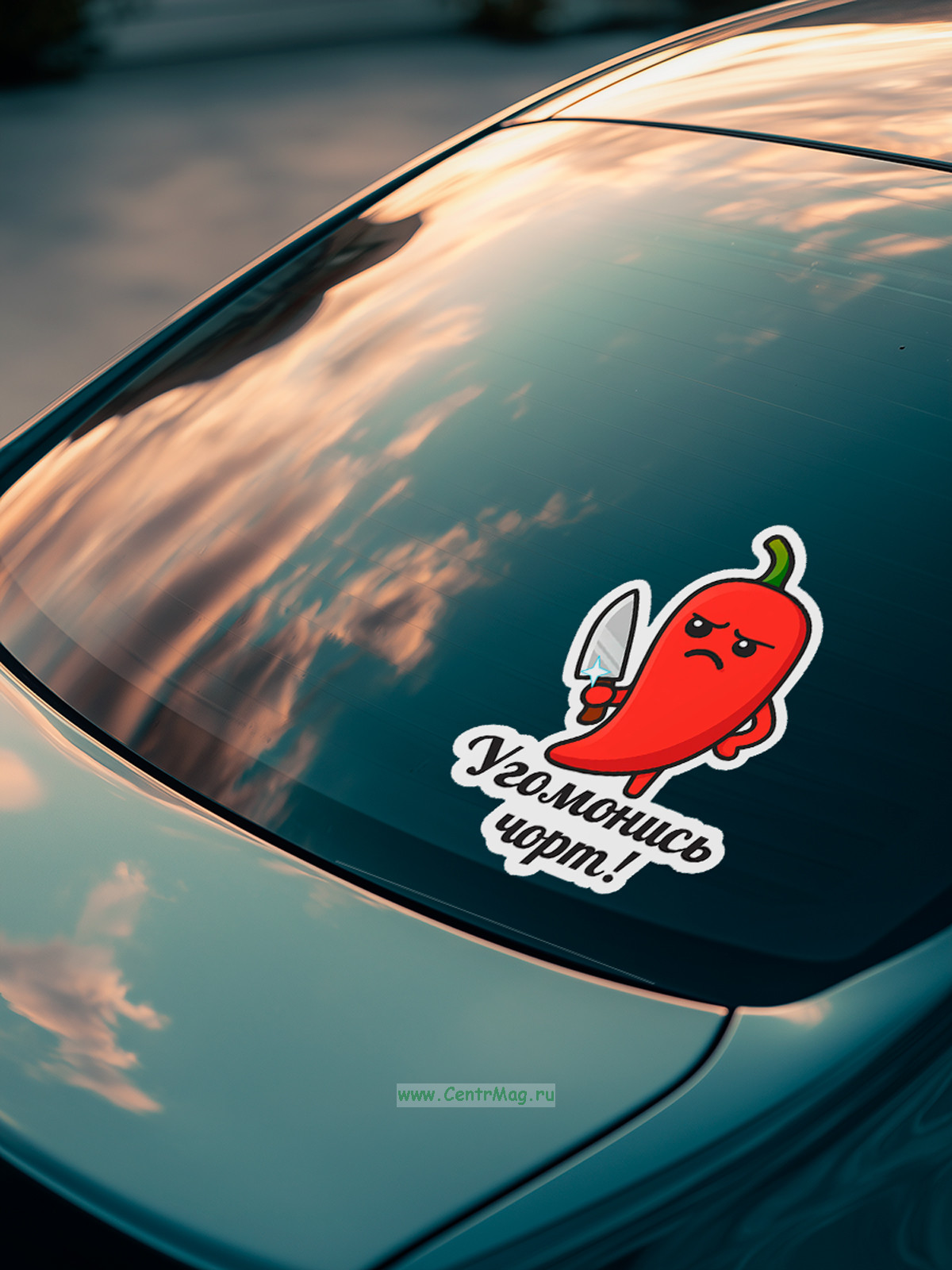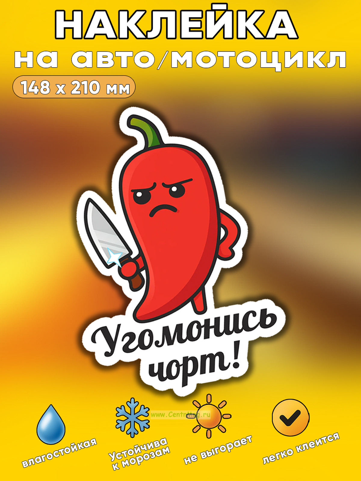 Прикольная наклейка "Угомонись чорт" (злой перец), А5