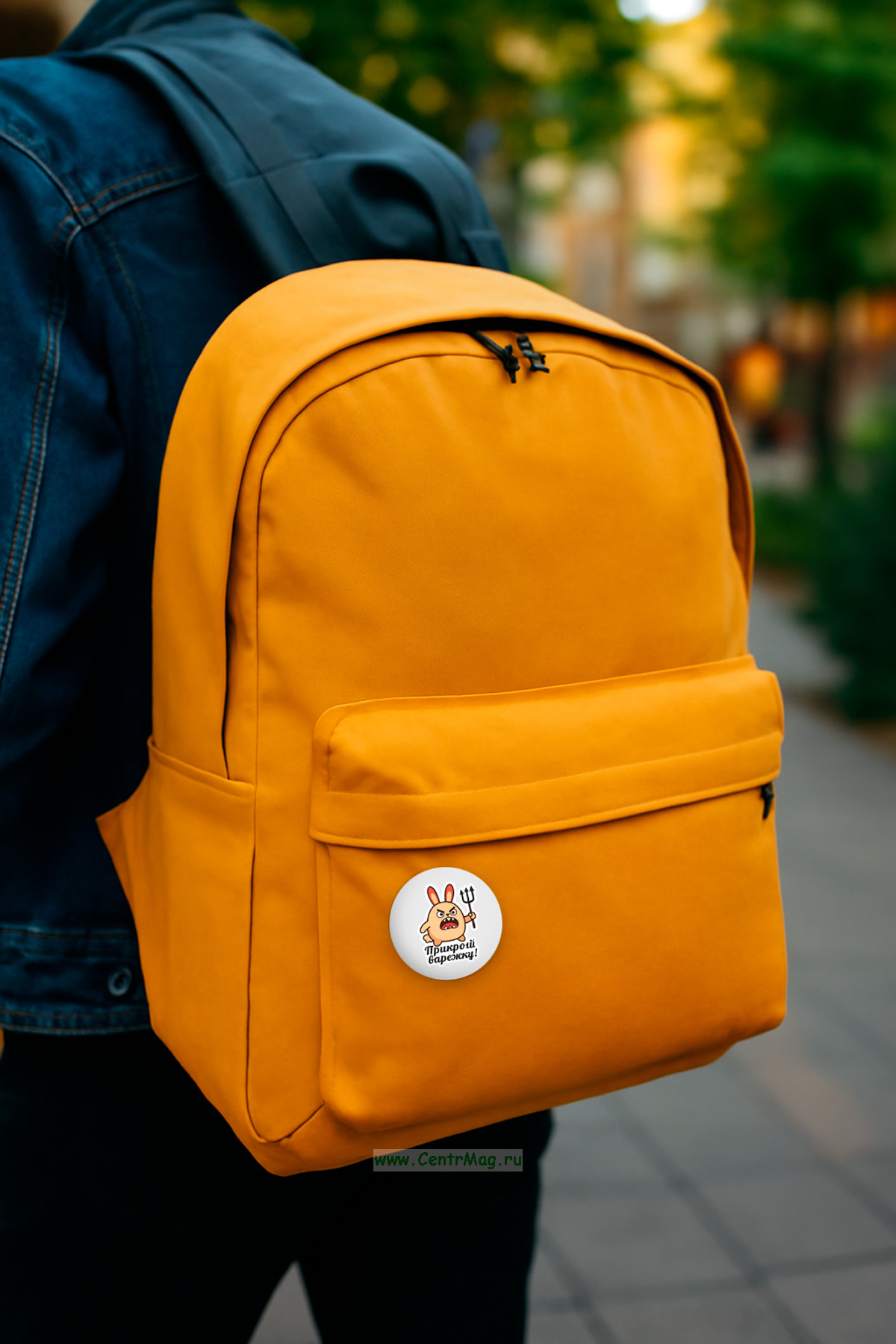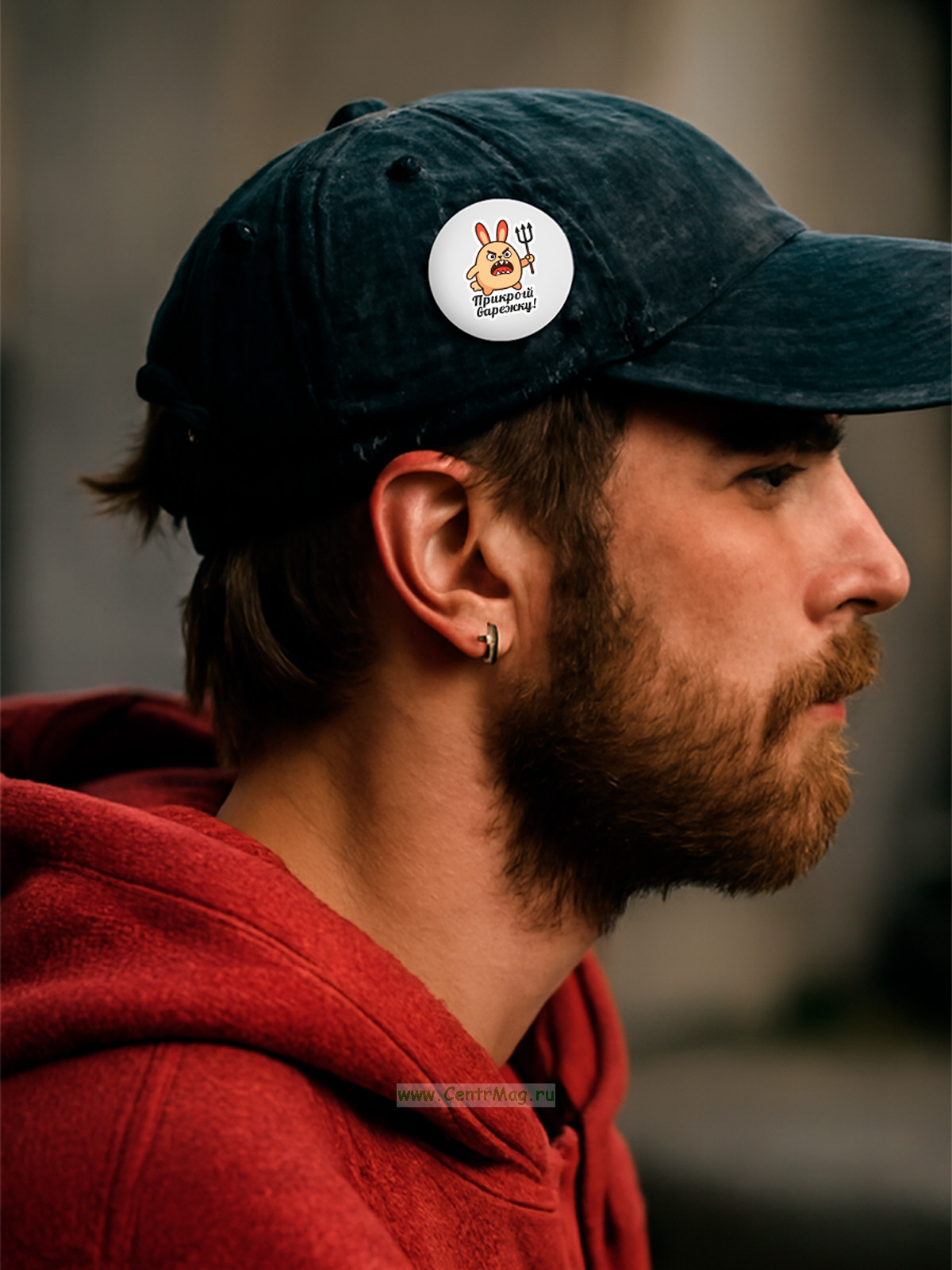 Прикольный значок "Прикрой варежку" (злой заяц)