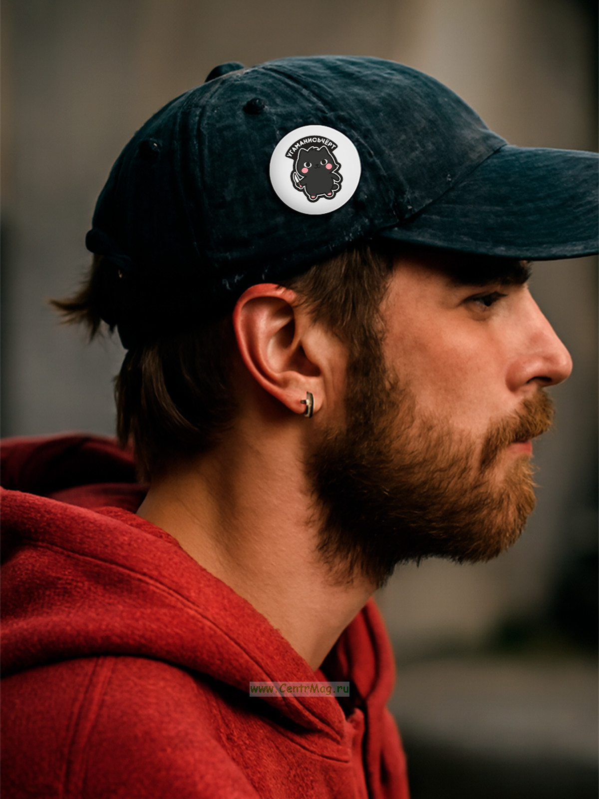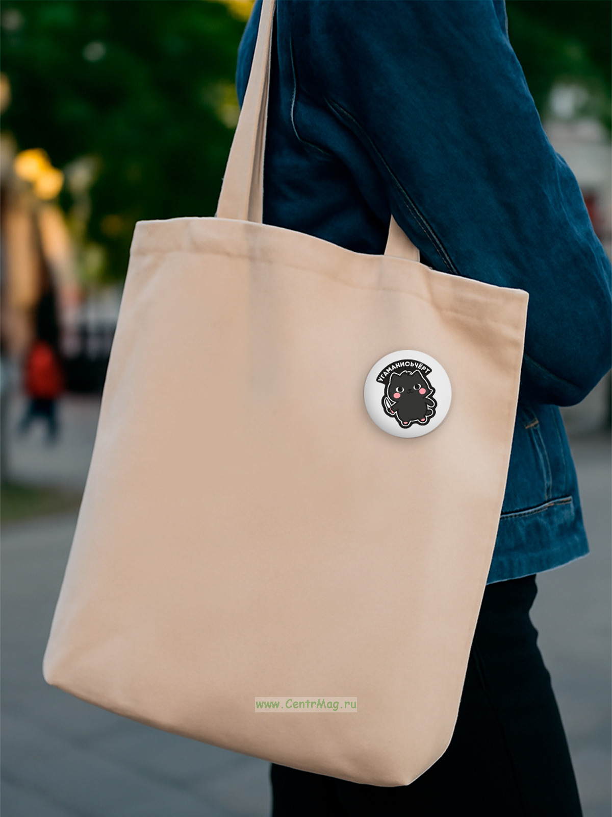 Прикольный значок "Угаманисьчерт" (коварный кот)
