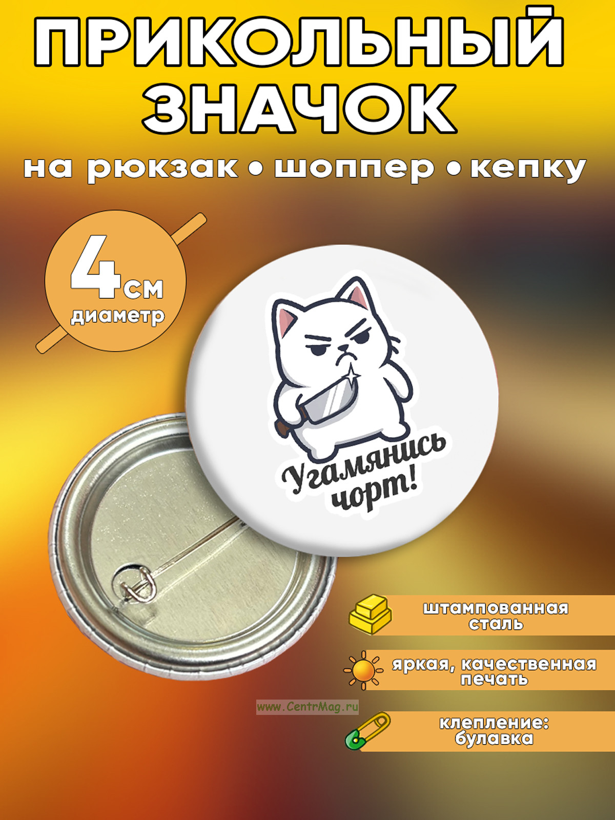 Прикольный значок "Угамянись чорт" (злая кошка)