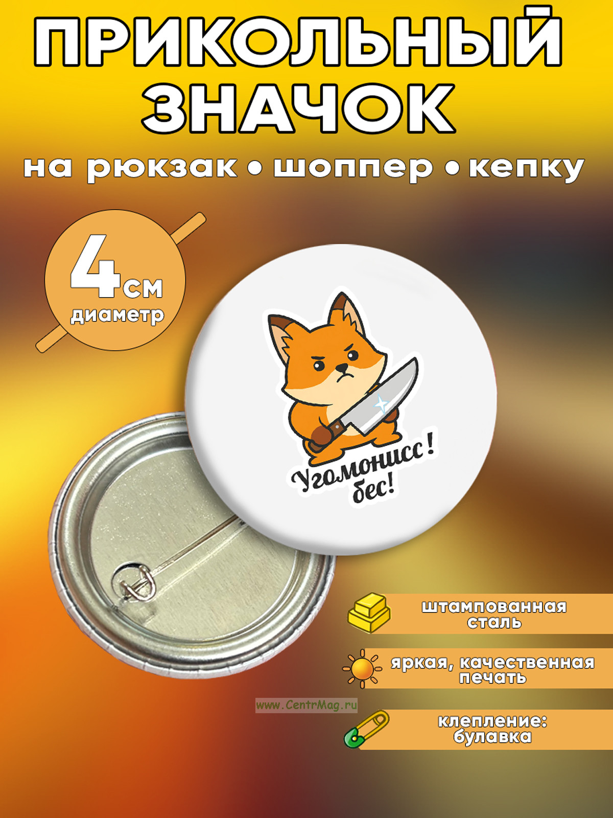 Прикольный значок "Угомонисс бес" (злая лиса)