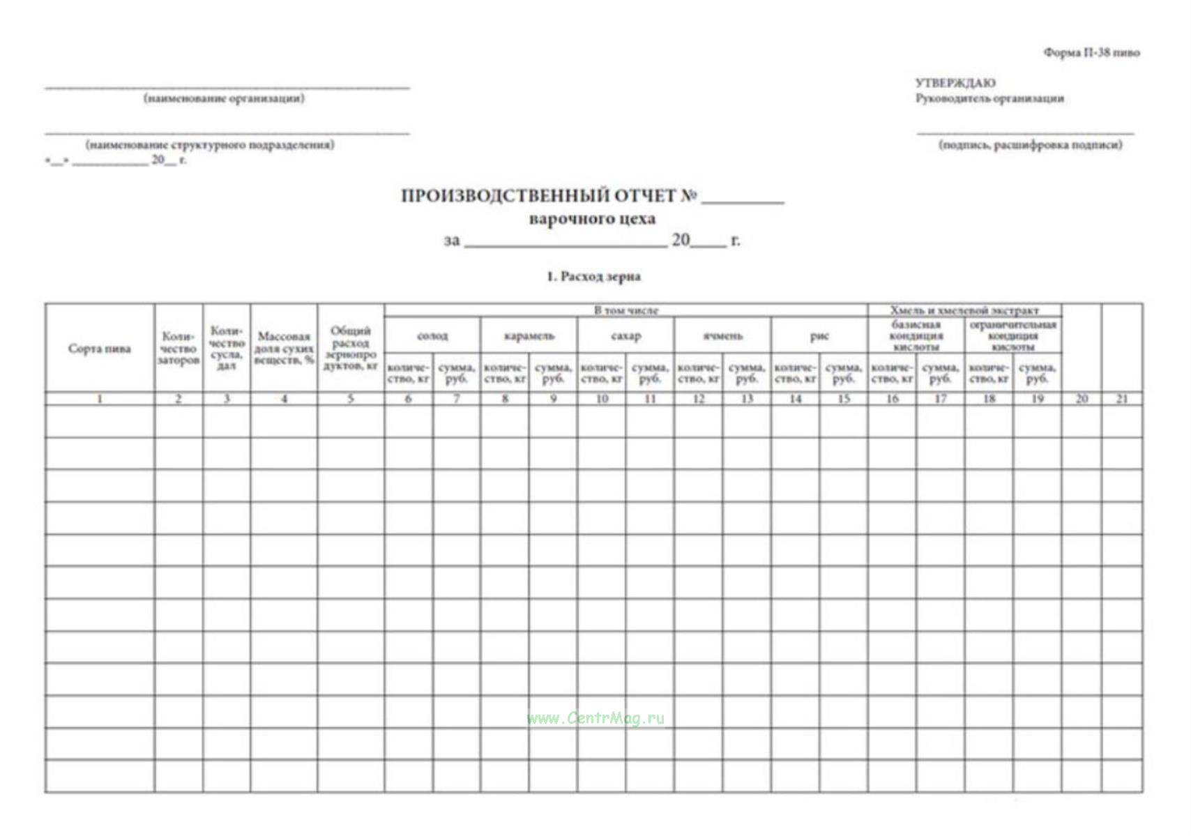 Производственный отчет о работе варочного цеха (Форма П-38 пиво) продается только как чистый незаполненный бланк, без печатей и подписей соответствует 149-ФЗ от 27.07.2006