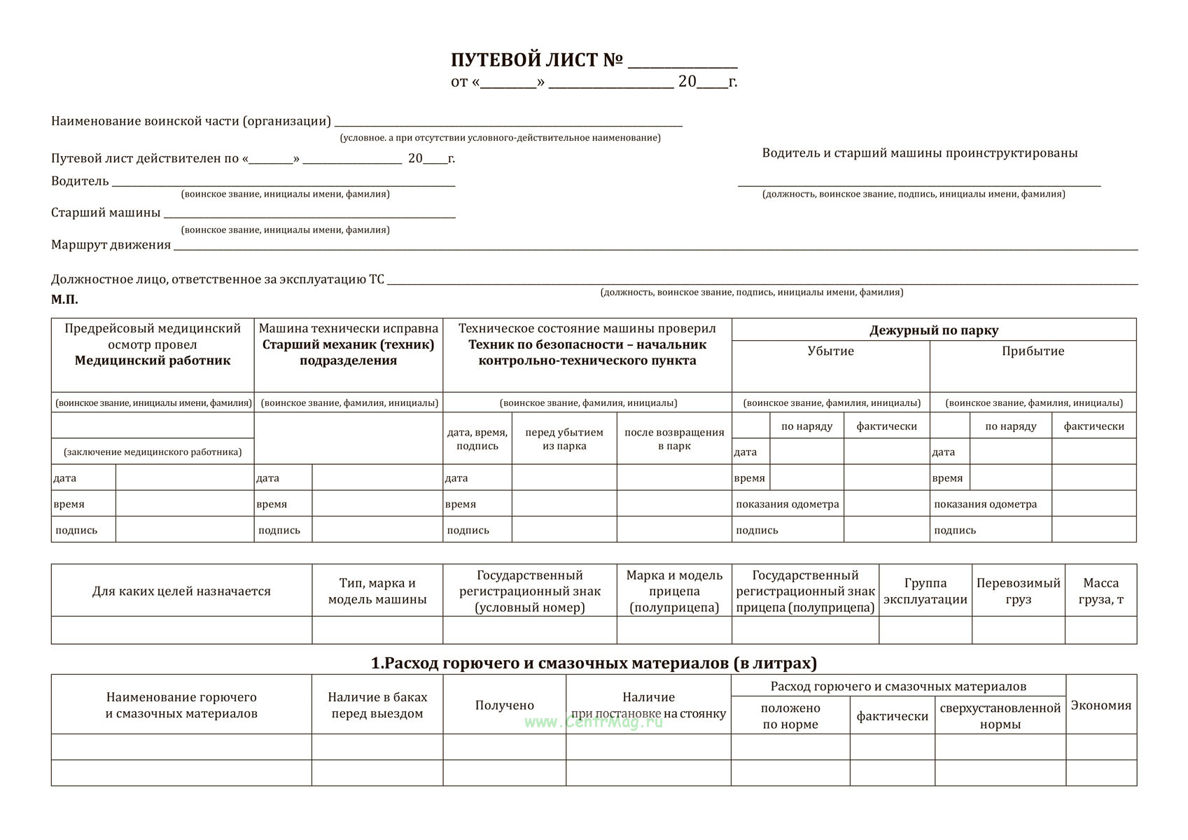 Путевой лист (для армии) продается только как чистый незаполненный бланк, без печатей и подписей и соответствует 149-ФЗ от 27.07.2006