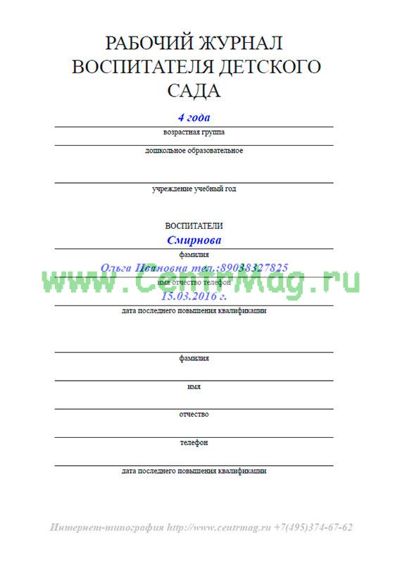Рабочий журнал включает обязательную педагогическую документацию воспитателя ДОУ: план работы и табель посещаемости детьми группы детского сада. Он поможет воспитателям ДОУ спланировать работу по различным видам деятельности, систематизировать результаты наблюдений за детьми, организовать работу с родителями, составить сетку занятий, провести диагностические мероприятия.