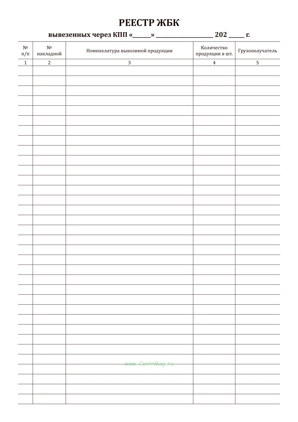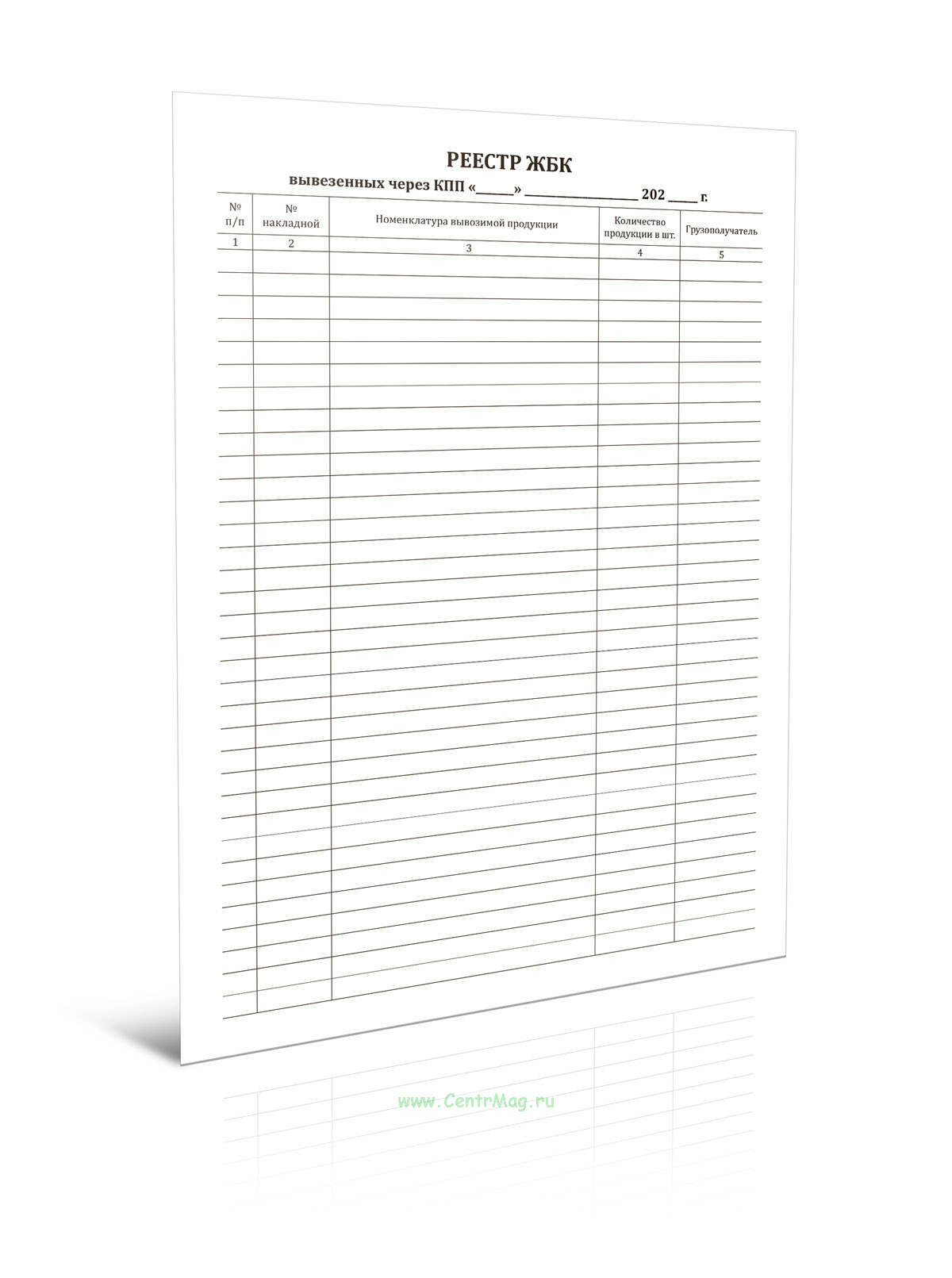 Реестр ЖБК вывезенных через КПП продается только как чистый незаполненный бланк, без печатей и подписей соответствует 149-ФЗ от 27.07.2006