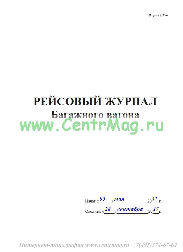Графы рейсового журнала багажного вагона (Форма ВУ-6):