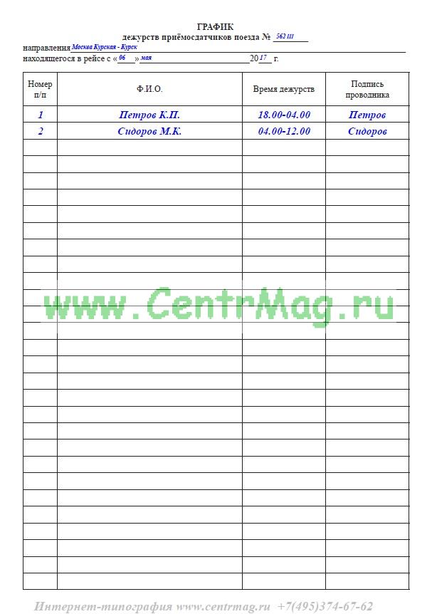 3. Время дежурств