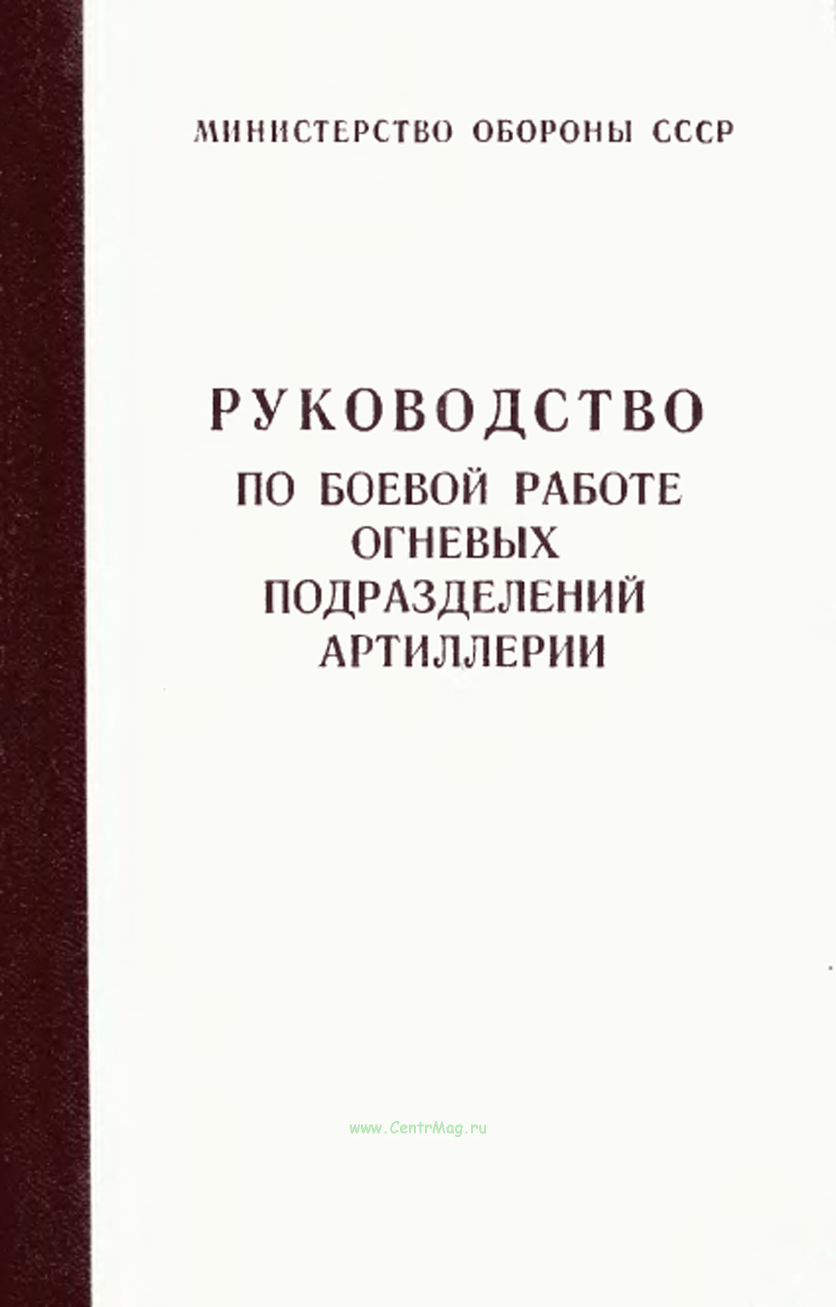 В Руководстве по боевой работе огневых подразделений артиллерии изложены действия личного состава при выборе, подготовке, занятии и оставлении огневой позиции, правила исполнения команд при ведении огня, порядок обращения с орудием (минометом, боевой машиной, установкой ПТУР) и боеприпасами на огневой позиции.