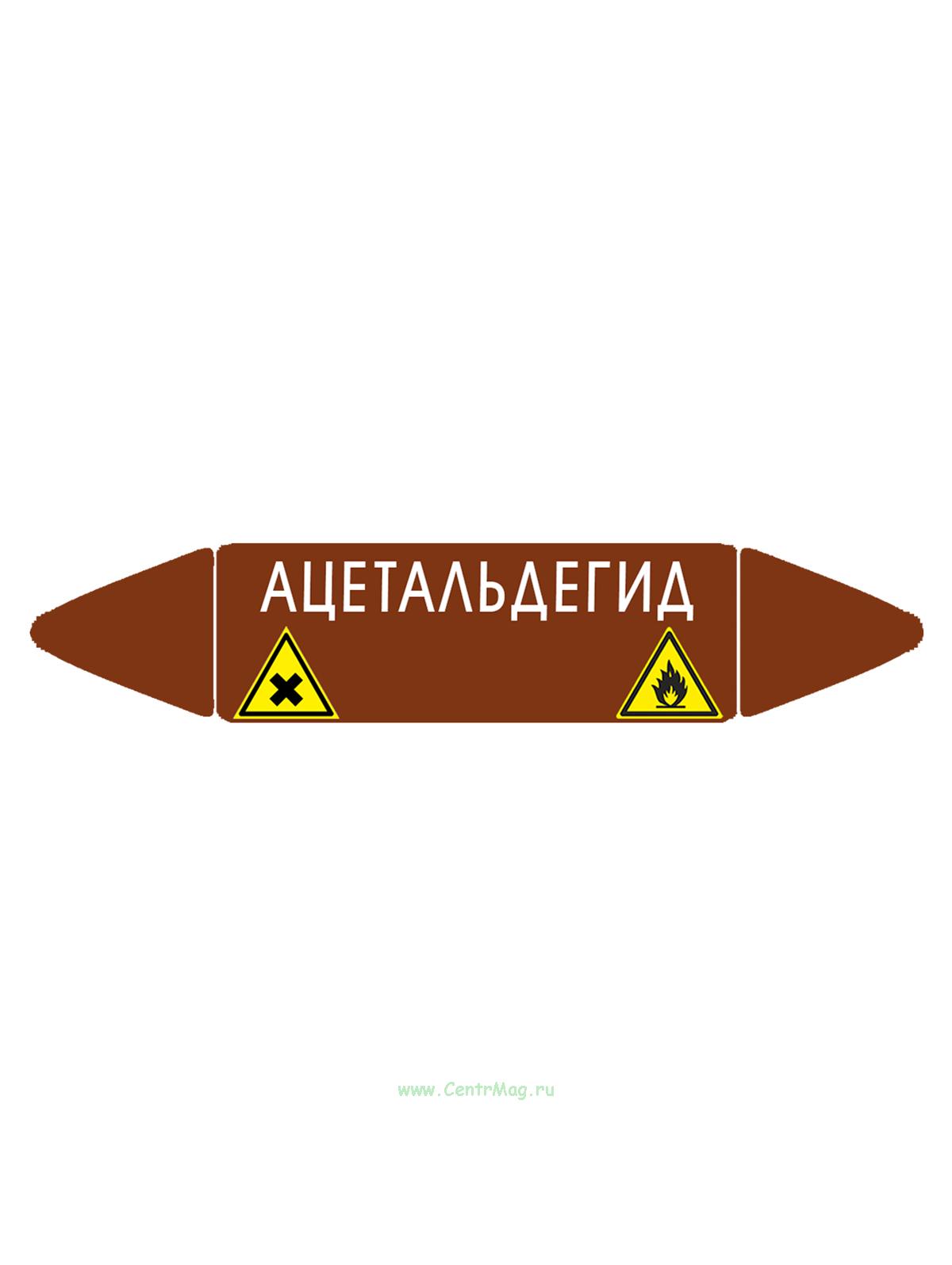 Самоклеящийся маркер "Ацетальдегид, легковоспламеняющиеся, вредные вещества" (26 х 126 мм, с ламинацией) для использования на наружных трубопроводах (40 руб.)